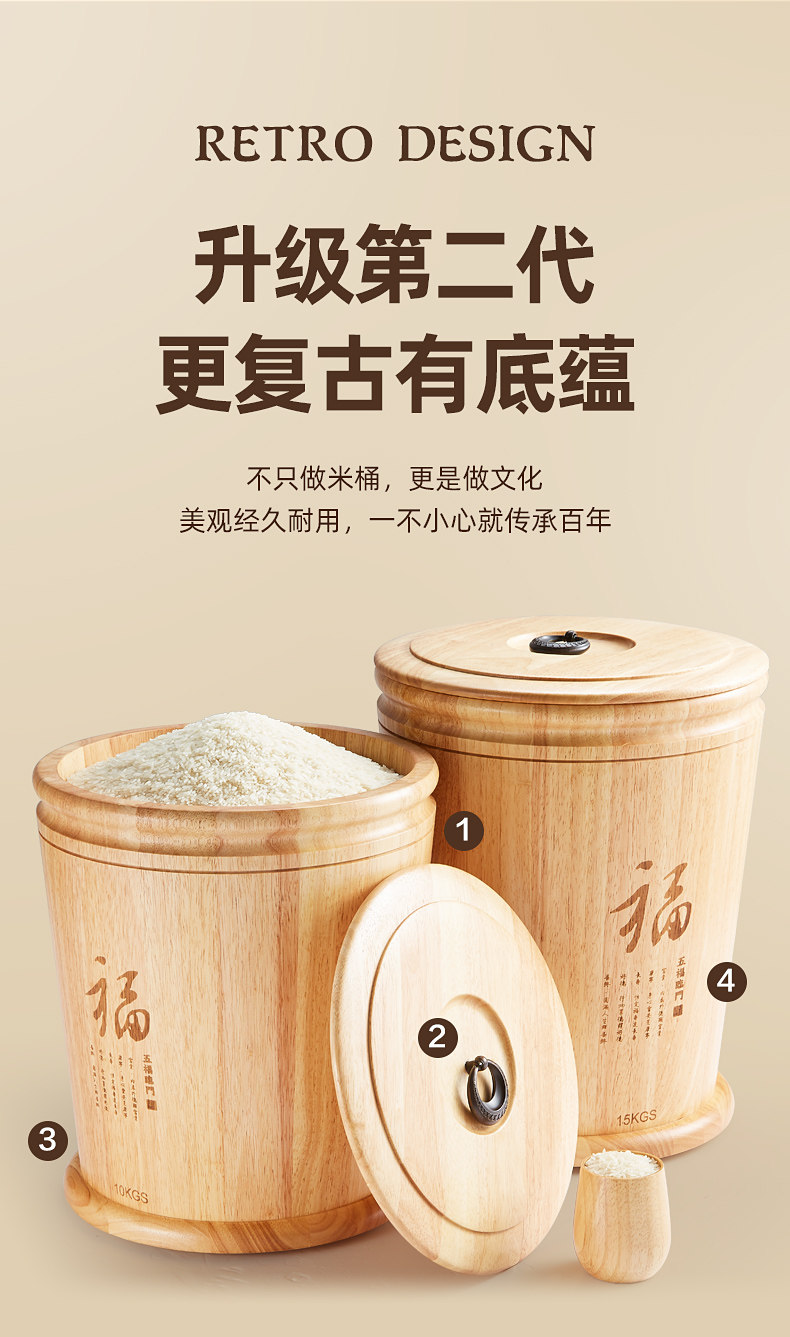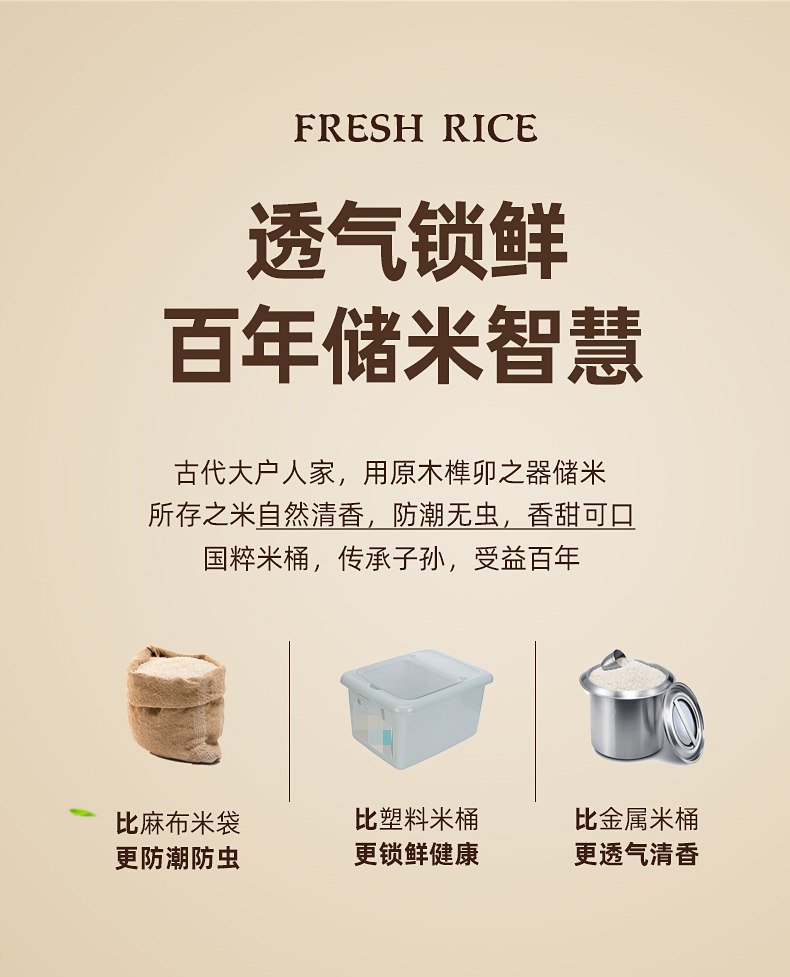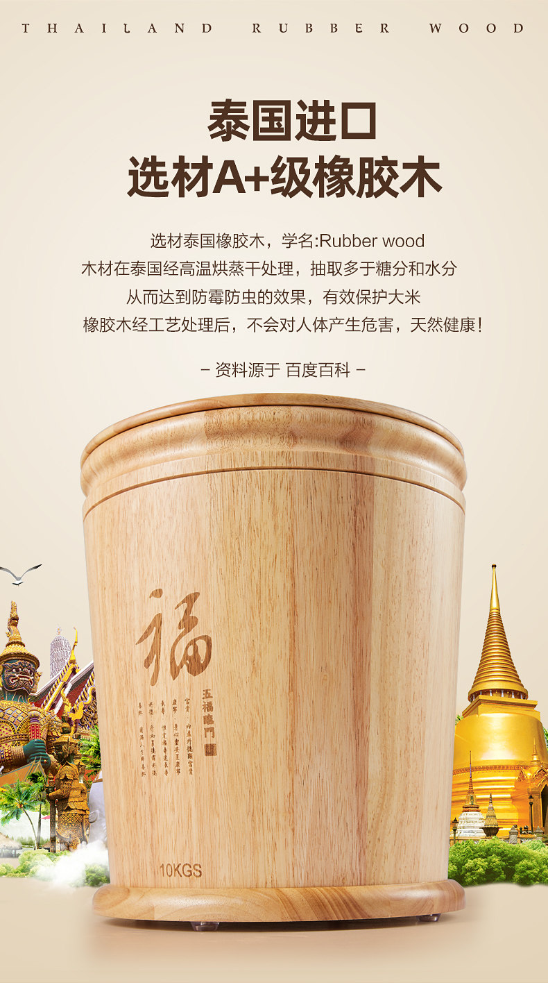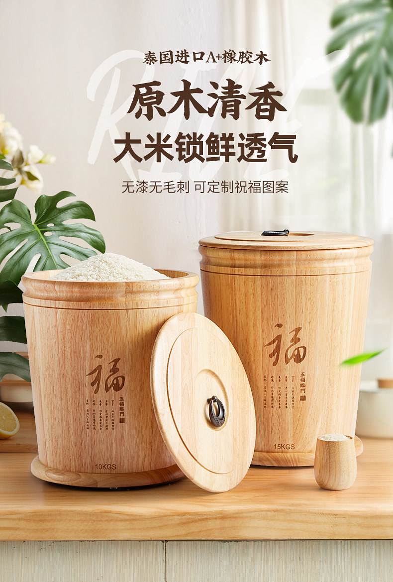 Ёмкость для риса из натурального дерева, коробка для хранения, защита от насекомых и влаги