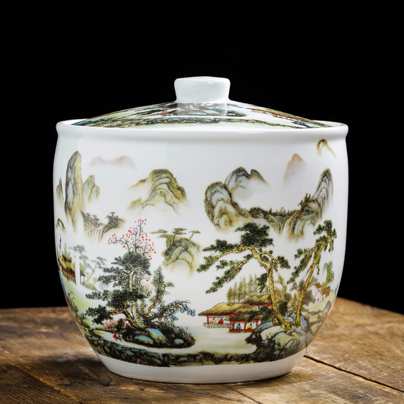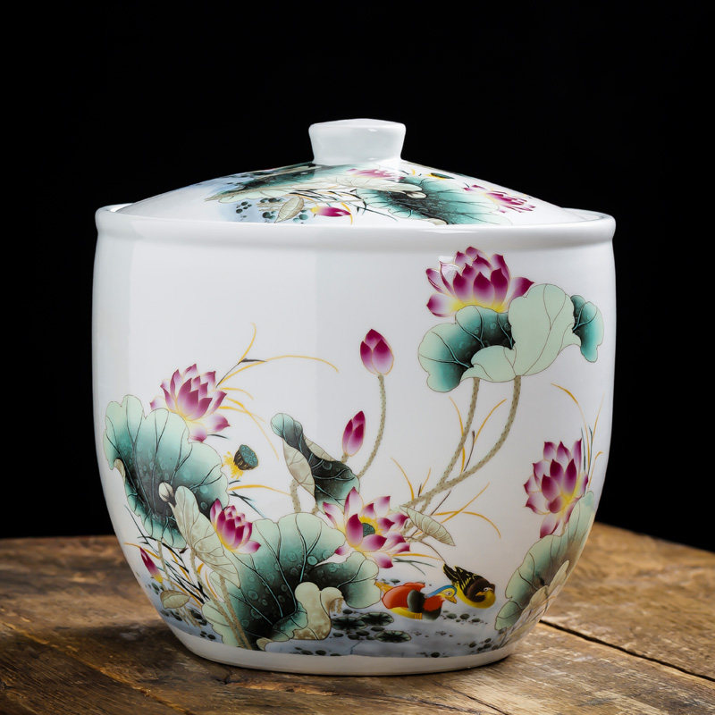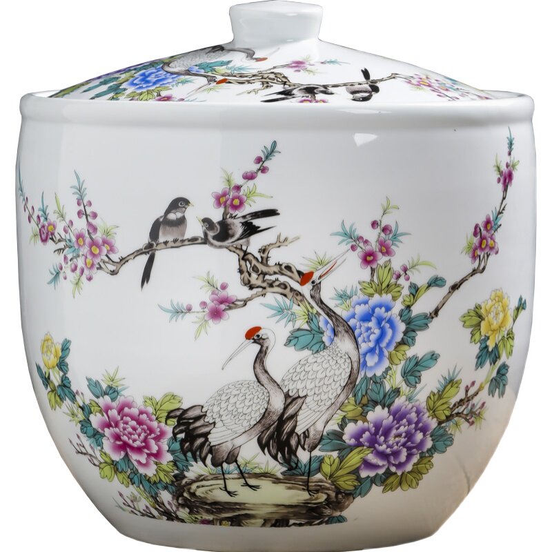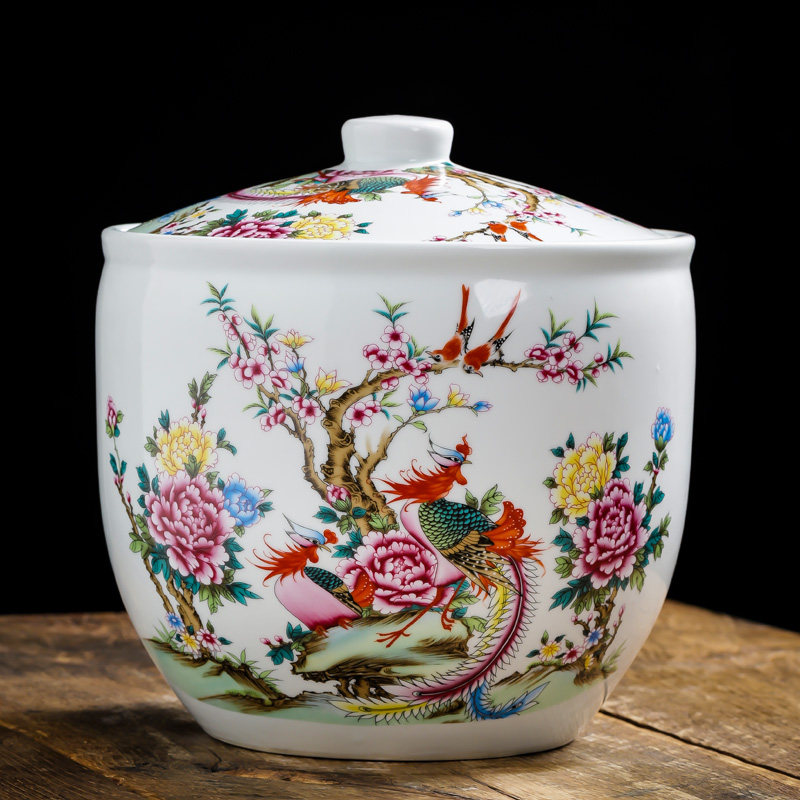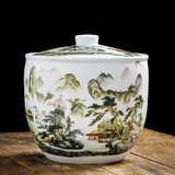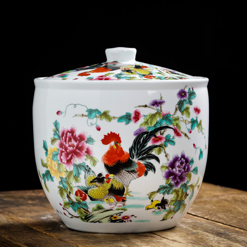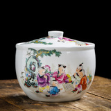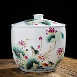 Керамический рисовый резервуар Джингхен с домом с домом с 20 фунтов запечатывания маринованного овощного танка китайский рисовый бочонок в стиле ретро.