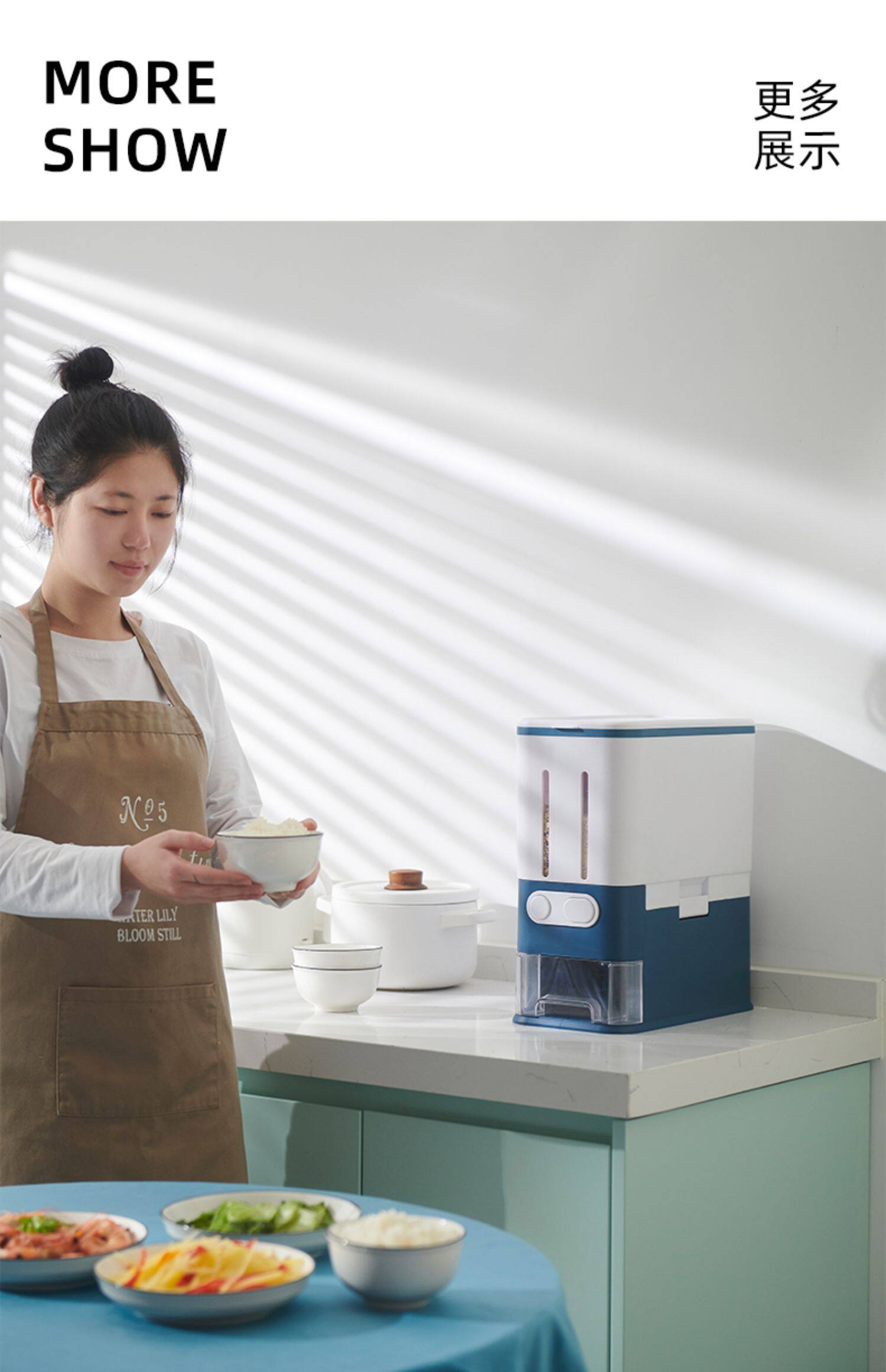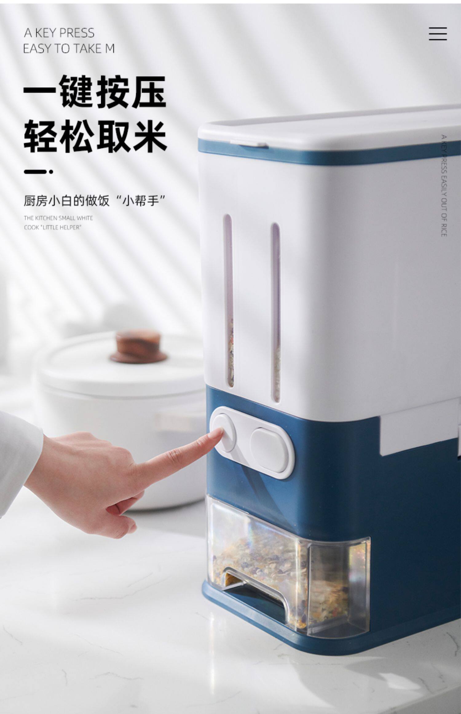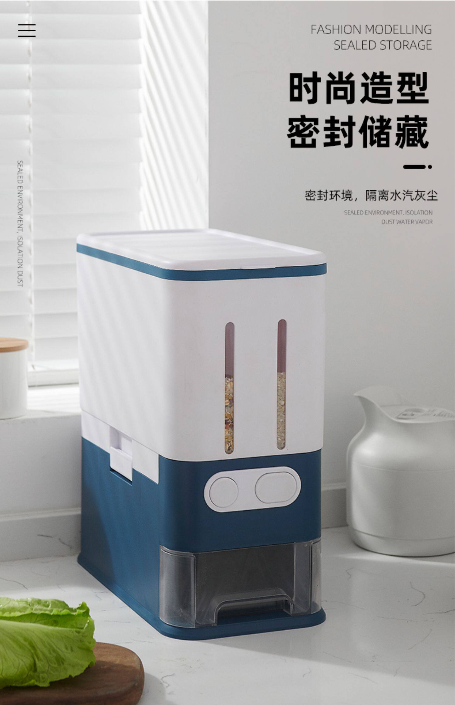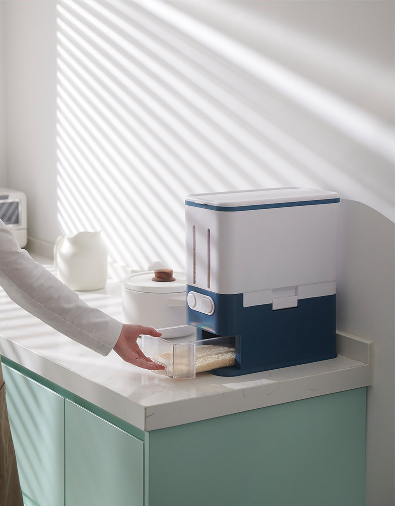 Нажмите в ящике для хранения бака рисового ствола, герметизирующие рисовые резервуары из риса 20 кг домохозяйственных насекомых -рискованные рисовые ящики 20 кот.