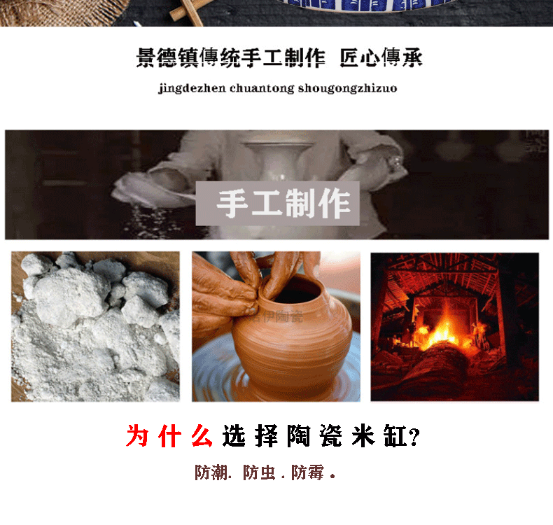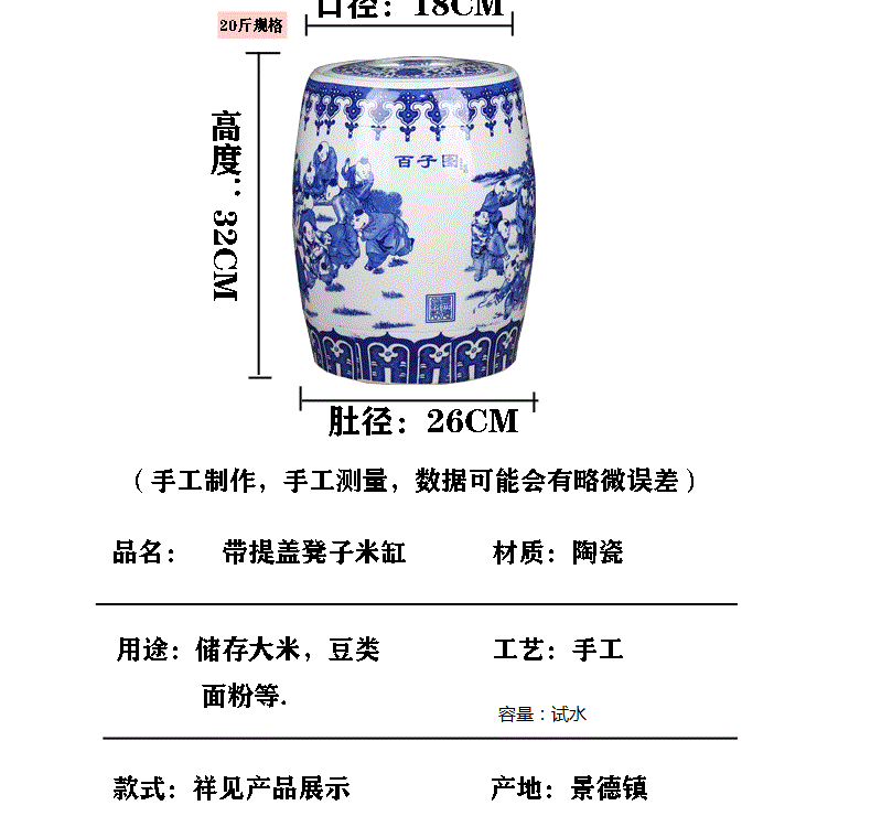 Керамический резервуар для хранения керамики Jingdezhen с крышкой домохозяйства 20 Catties 30 Catties 50 Catties Meter Barrel-защищенные от влажного уплотня