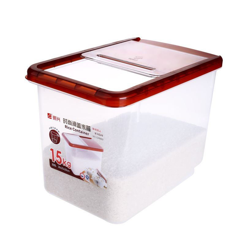 Слайдер Zhenxing 15 кг рисовая коробка пластиковая хранение рисовая ствола, придающая чашку рисовой коробки, рисового цилиндра и насекомых и влаги.