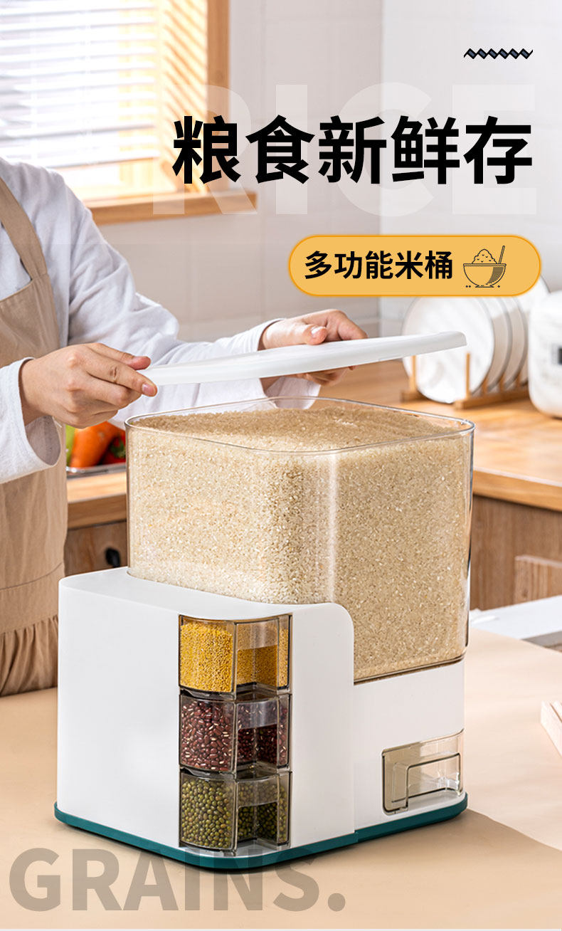 Рисовая ведро домохозяйственное насекомые и влажность -влага -Герметизация Количественная ящик для хранения риса категория пищевая категория Разное хранение зерно