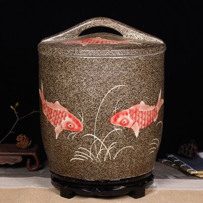Скважина -Цилиндровый керамический ремень крышки рисовой цилиндр высокий уровень домашней глиняной посуды Кухонный запас рисовой ствол уплотнение рисового бака и коробка для хранения зерна