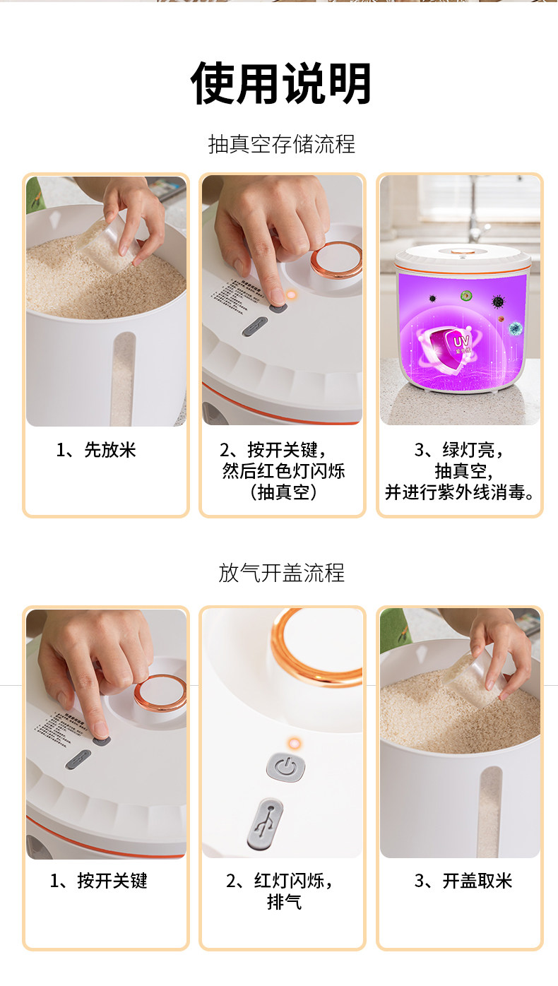 臻空管家 Кухня, нагруженная рисовым стволом для хранения зерна и насекомых -Влажесая влажная -уплотнение домашнего зерна для домашних животных вакуумная ствол рисовой ствол 20 кот