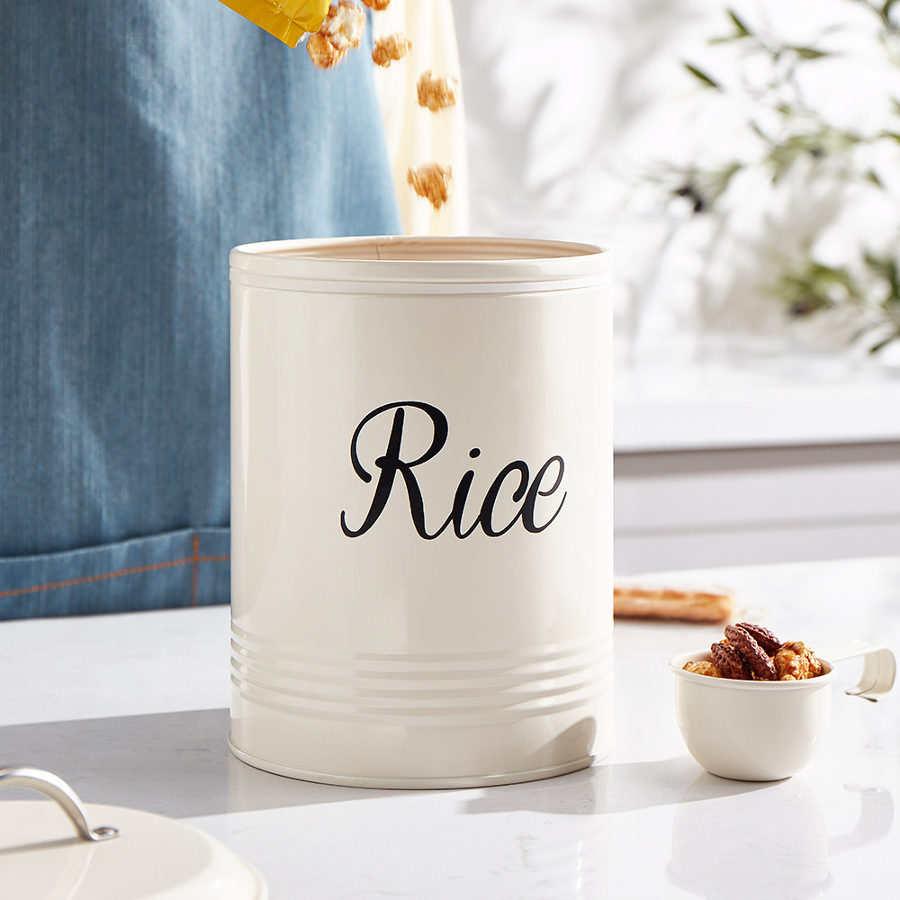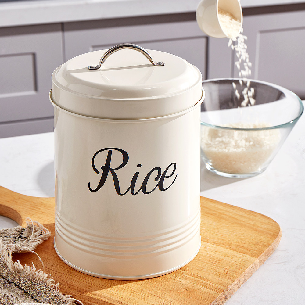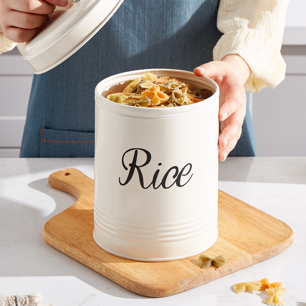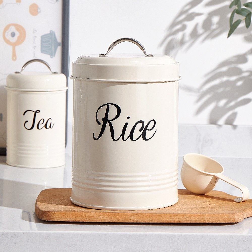 粉颜 Европейский стиль сельский ветровый уплотнение Железное рисовое ствол 5 кот профилактики влаги хороши для рисовой ложки круглой малой хранения рисовой бочки 2,5 кг