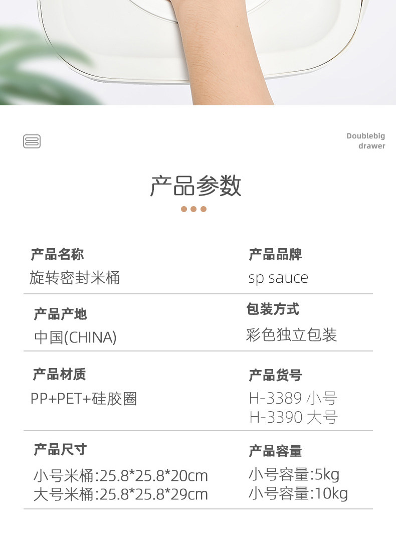 - Большой 10 кг загружен+резервуар для хранения с четырьмя квадратами [дайте метр чашку+отправить рисовый стержень]