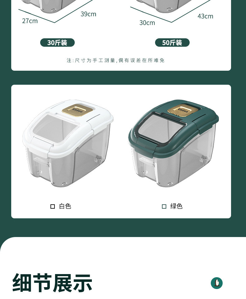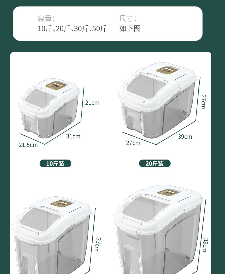 Ведро для риса, герметичный ящик для риса с защитой от насекомых и влаги, резервуар для риса на 30 кошек, большой ящик для хранения риса, резервуар для хранения домашней муки на 50 кошек