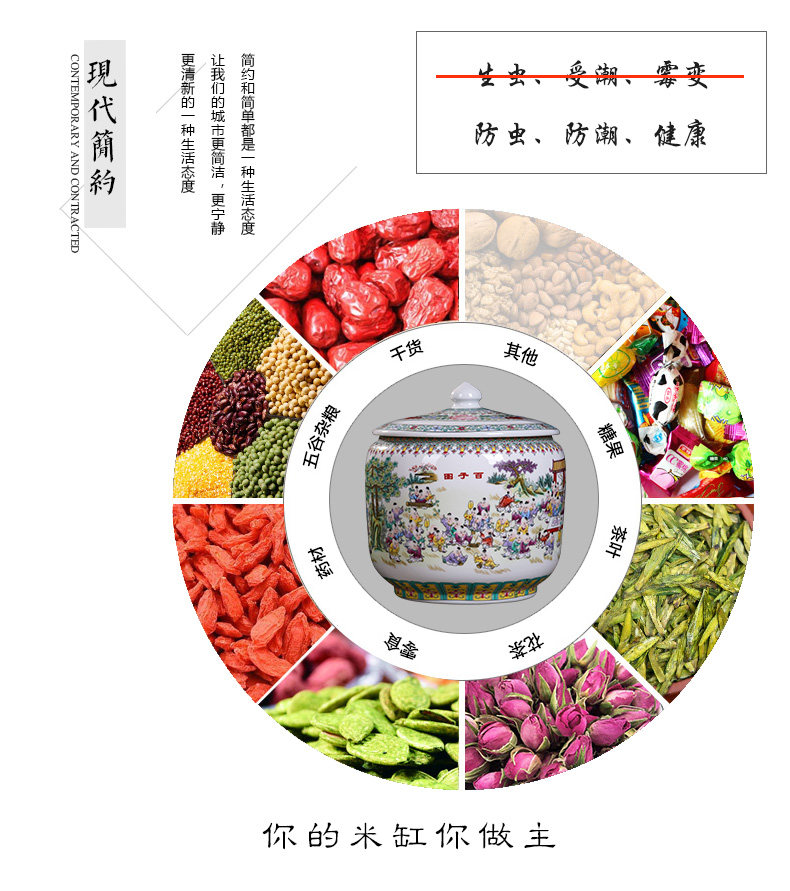Jingdezhen Ceramic 20 Catties 30 Catties of Rice Bucket Home Rice Cylind