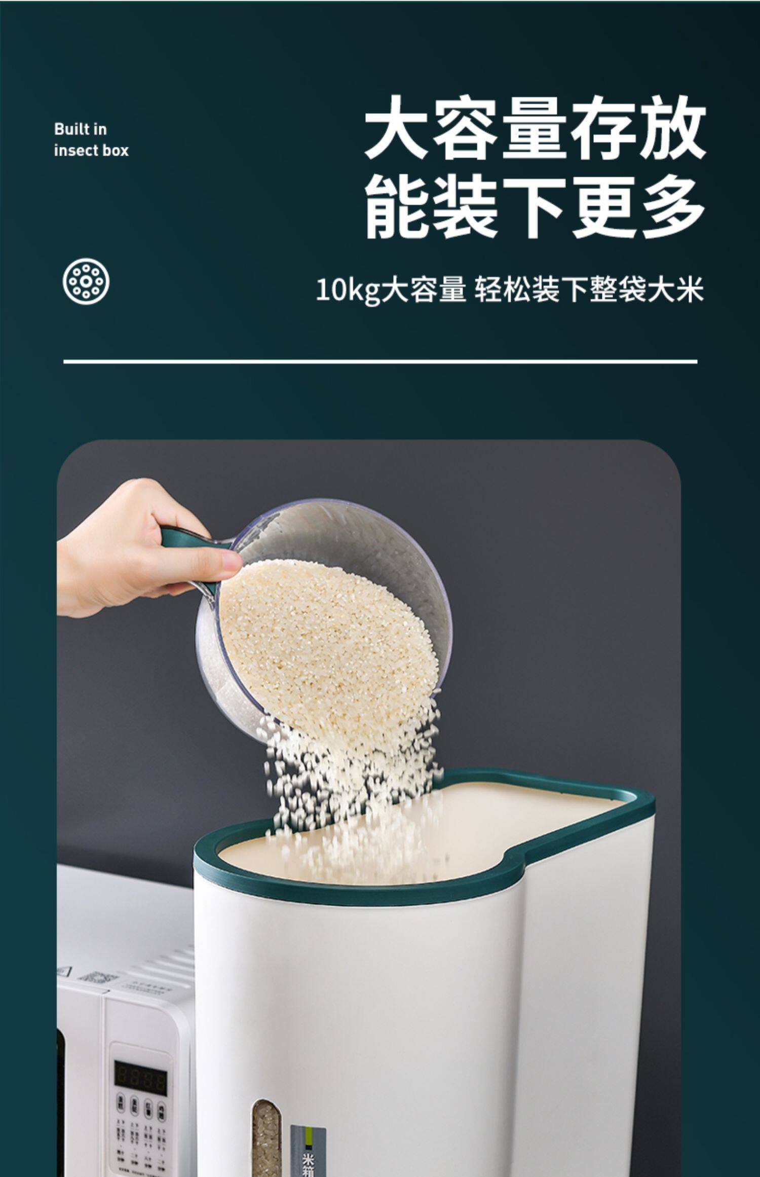 Пресс-дозатор ведра для риса, бытовой, защищенный от насекомых и влагонепроницаемый ящик для хранения риса, герметичный резервуар для риса, ящик для хранения риса, 20 кг