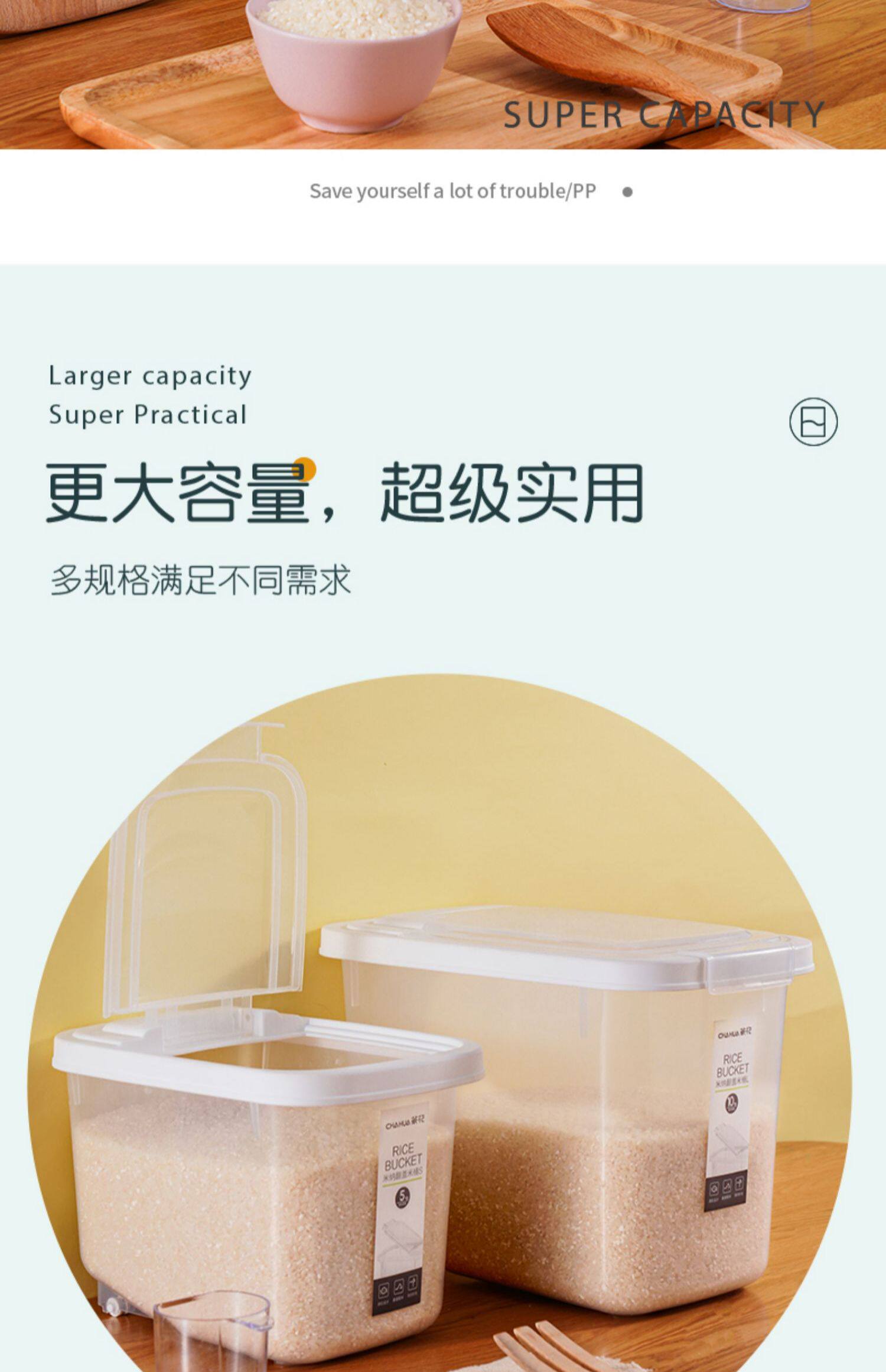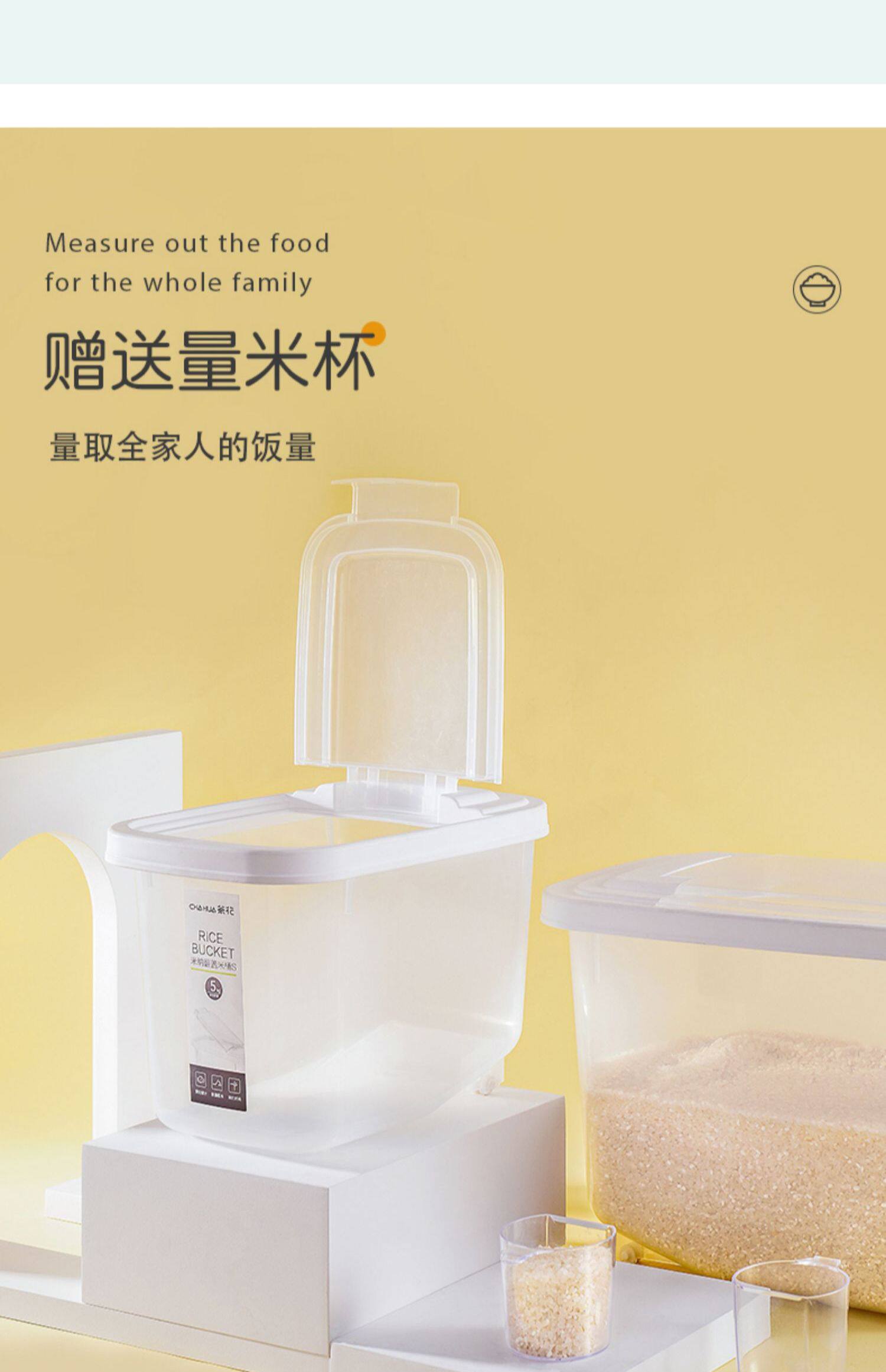- Популярная модель прозрачного ведра для риса с откидной крышкой [10 фунтов]