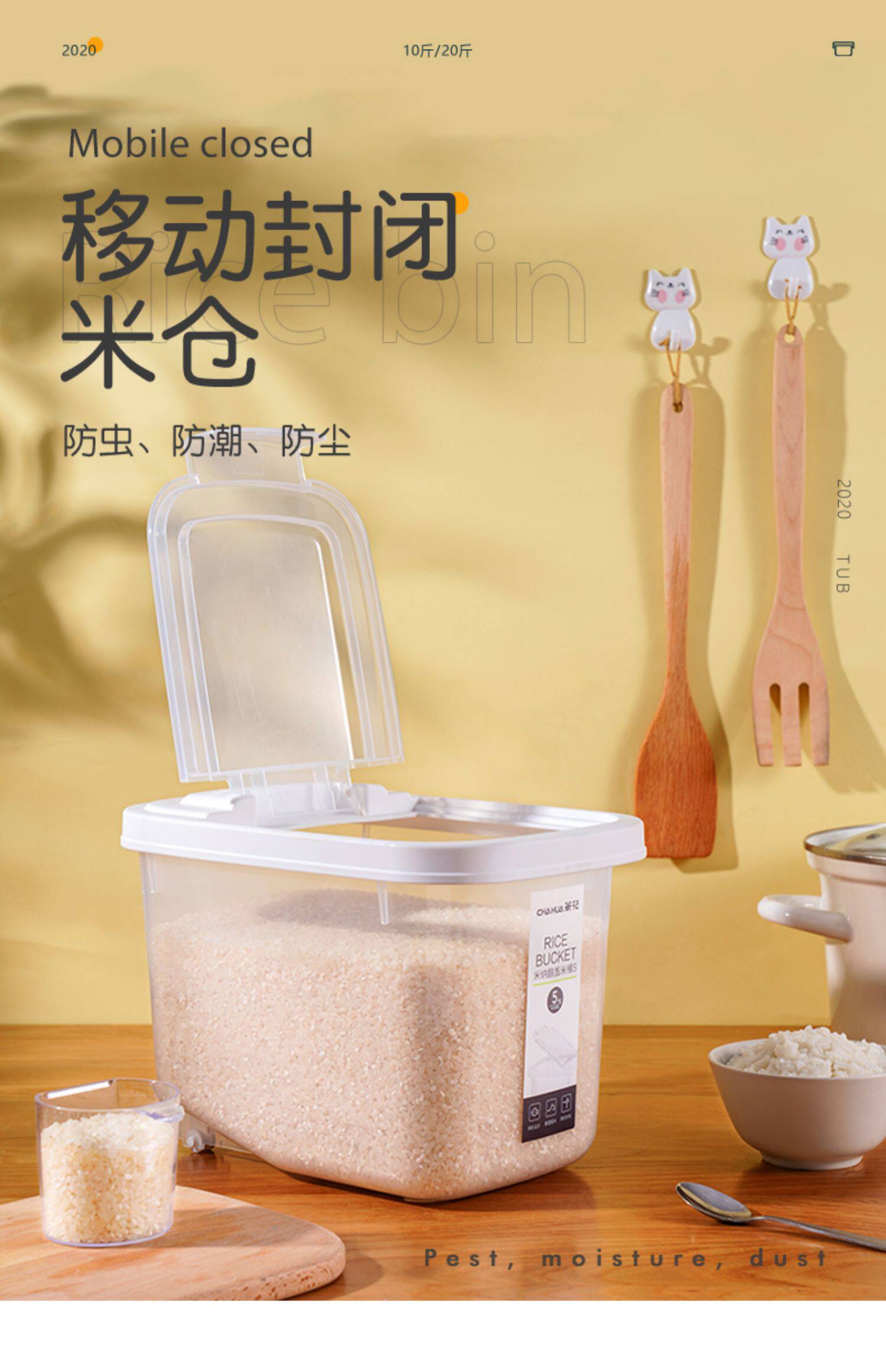 - Прозрачное ведро для риса с откидной крышкой [10 кг_20 кг]