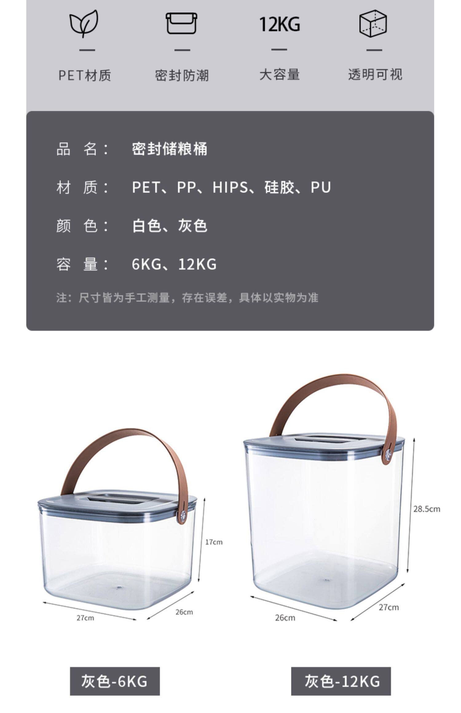 - Прозрачная герметичная рисовая бочка 12 кг-белый