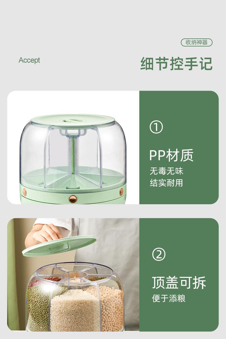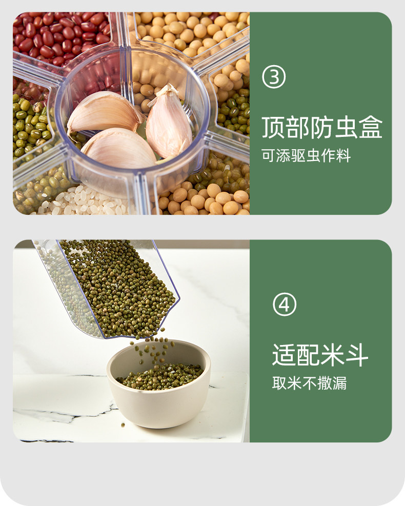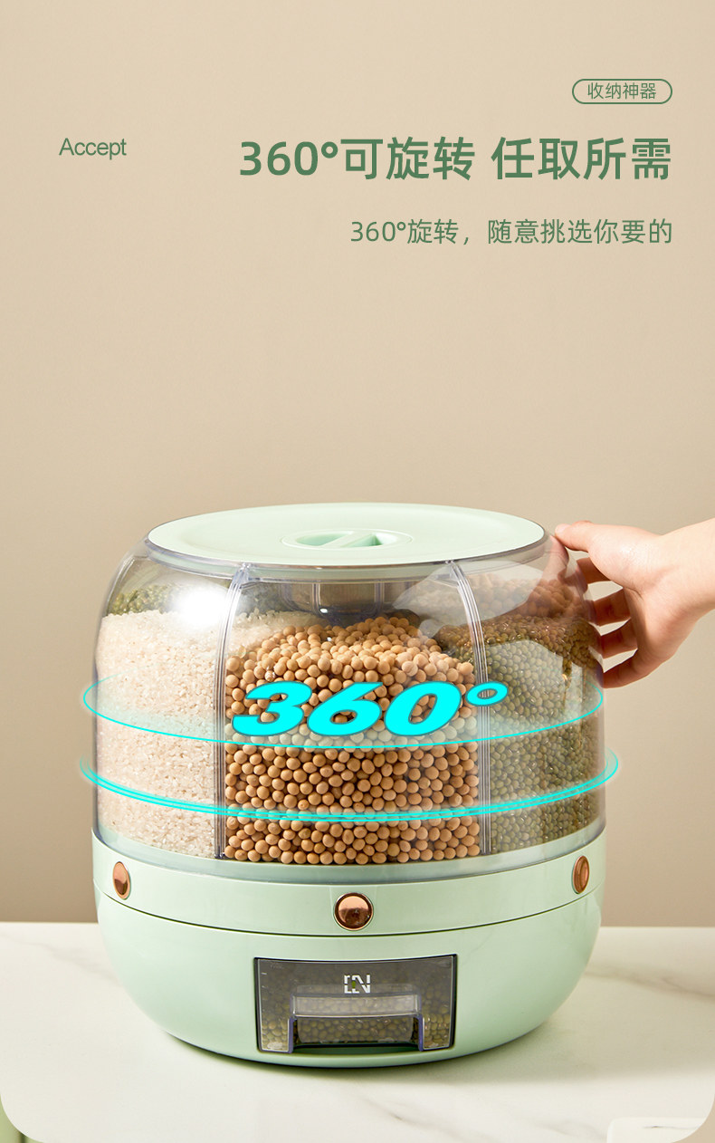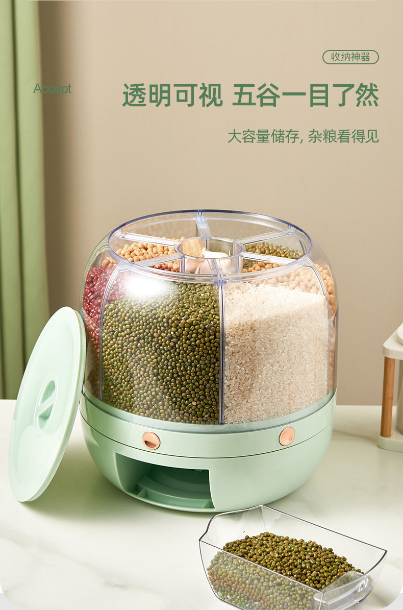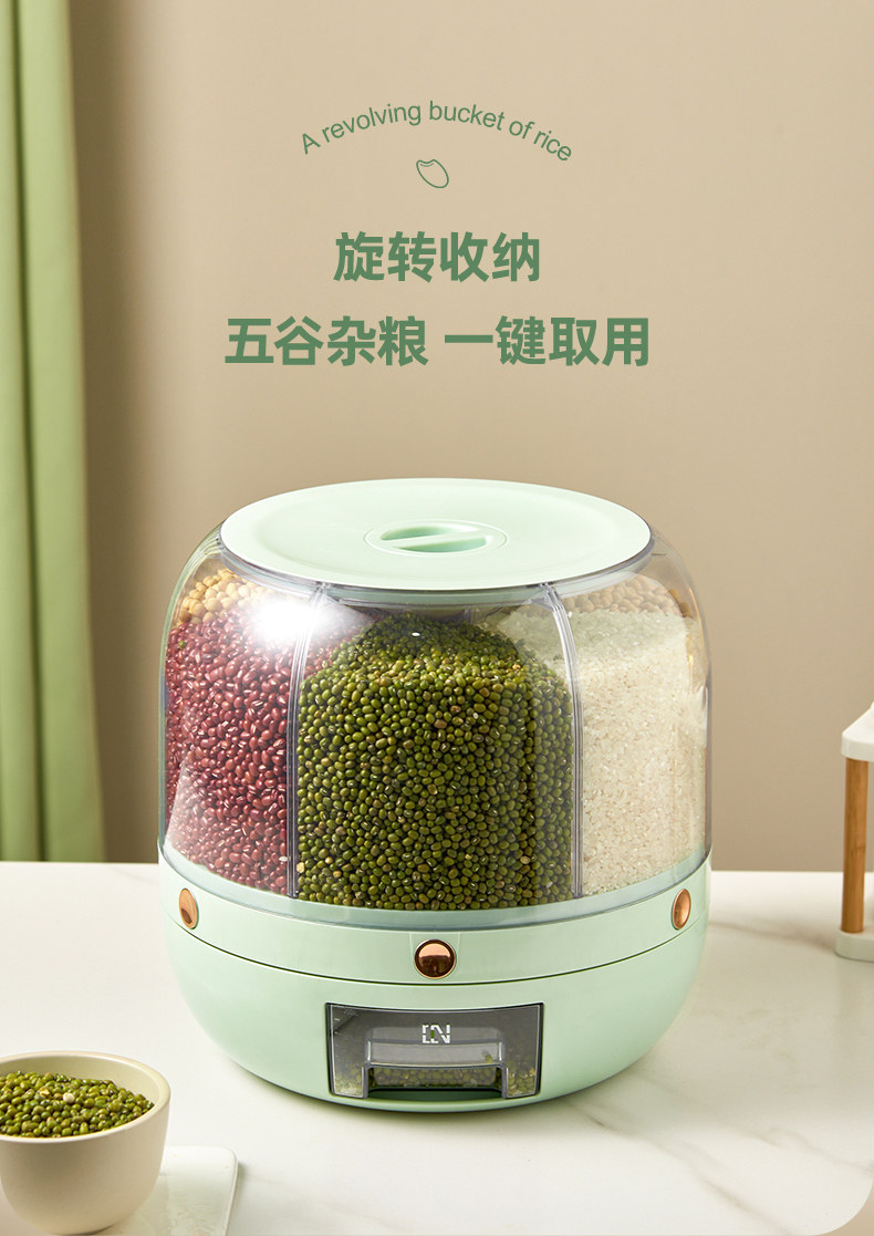 Коробка для хранения зерна в домашних условиях Вращение пищевого класса 6 -точка уплотнения влажности -противоположная анти -инреста