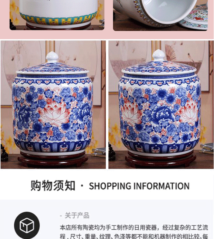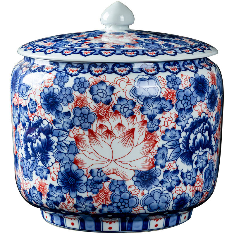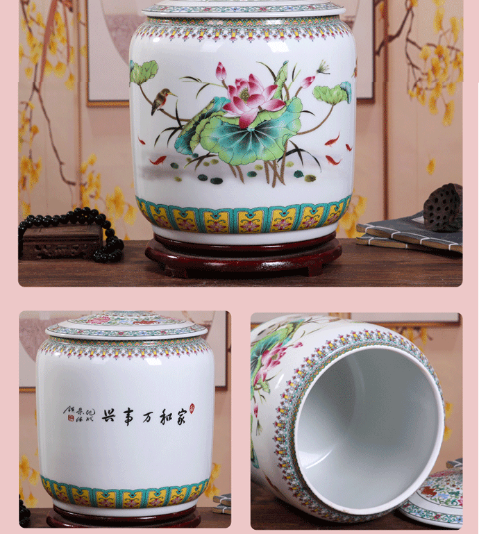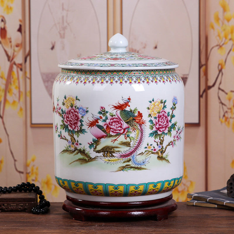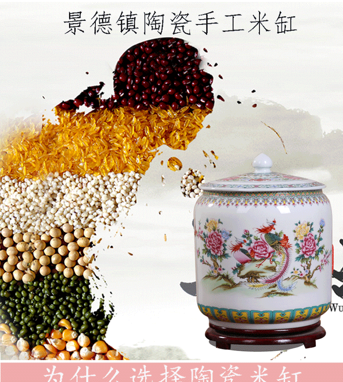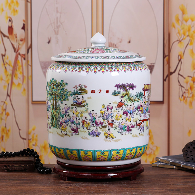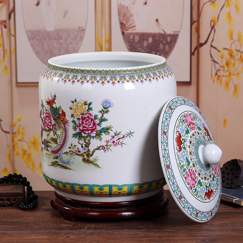 Керамический рисовый цилиндр Jingdezhen 20 Catties of Home Water Tack с крышкой с крышкой для герметизации влажности -Проницаемой червячной муки.