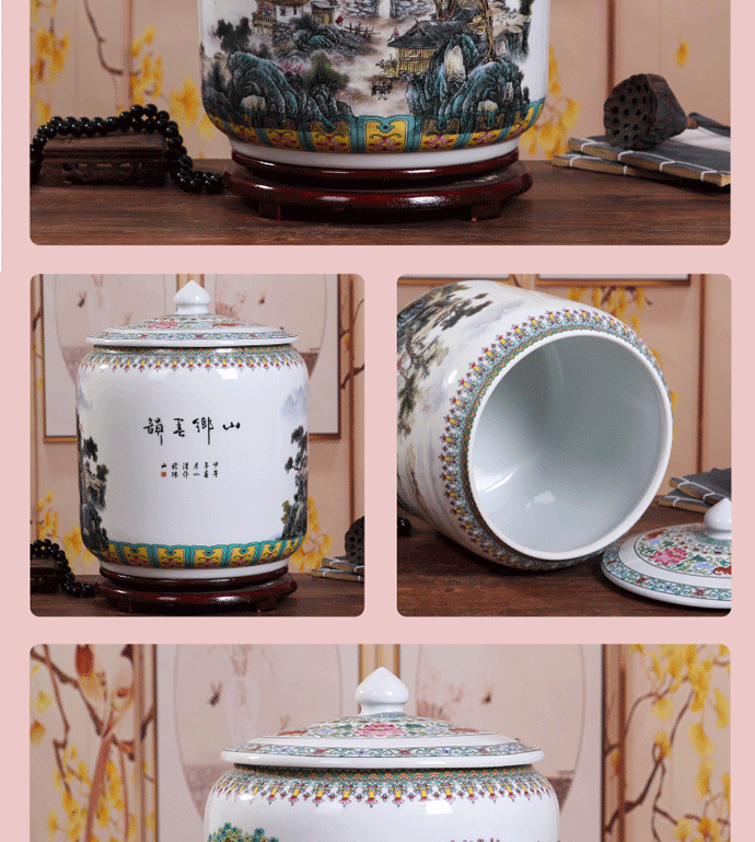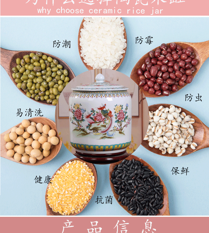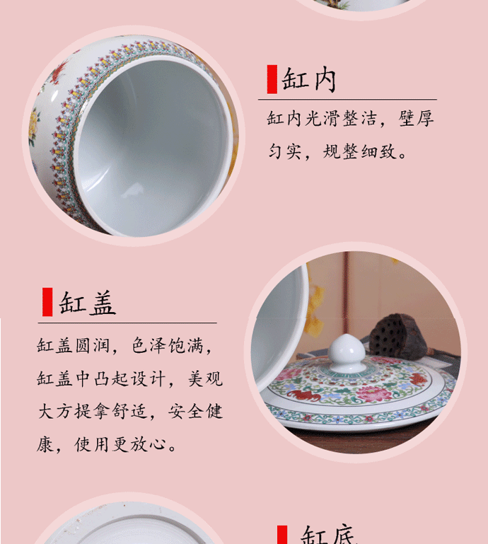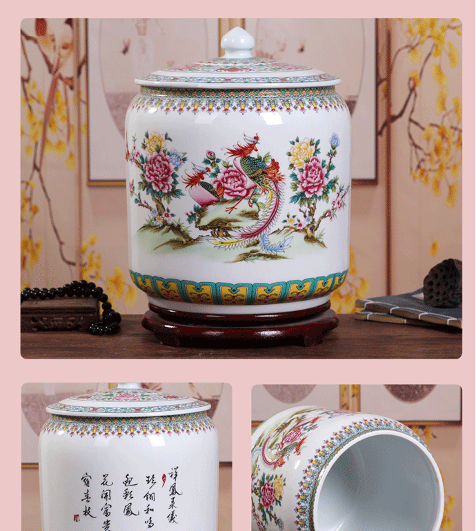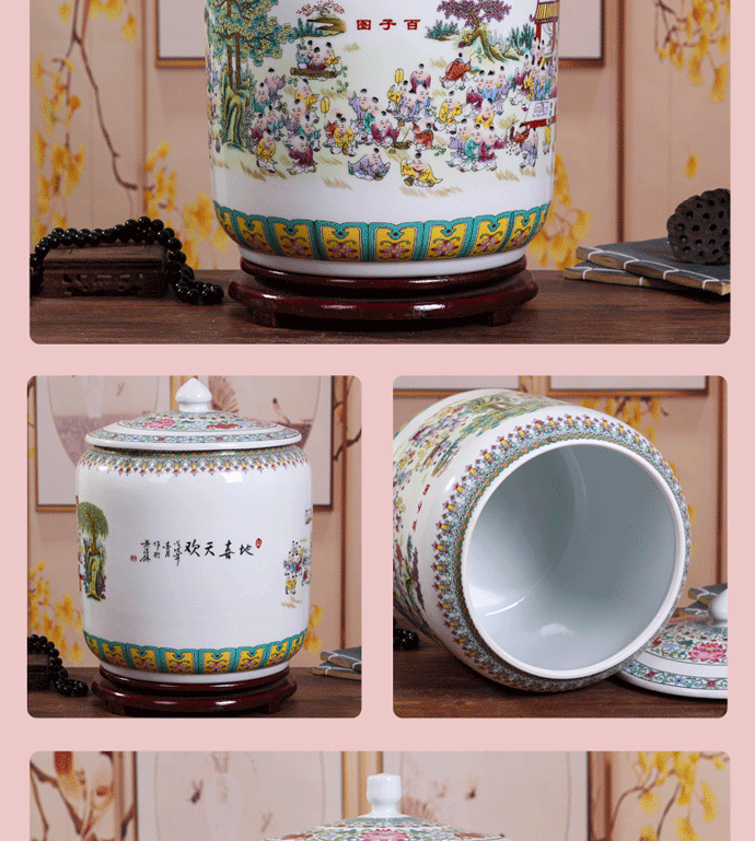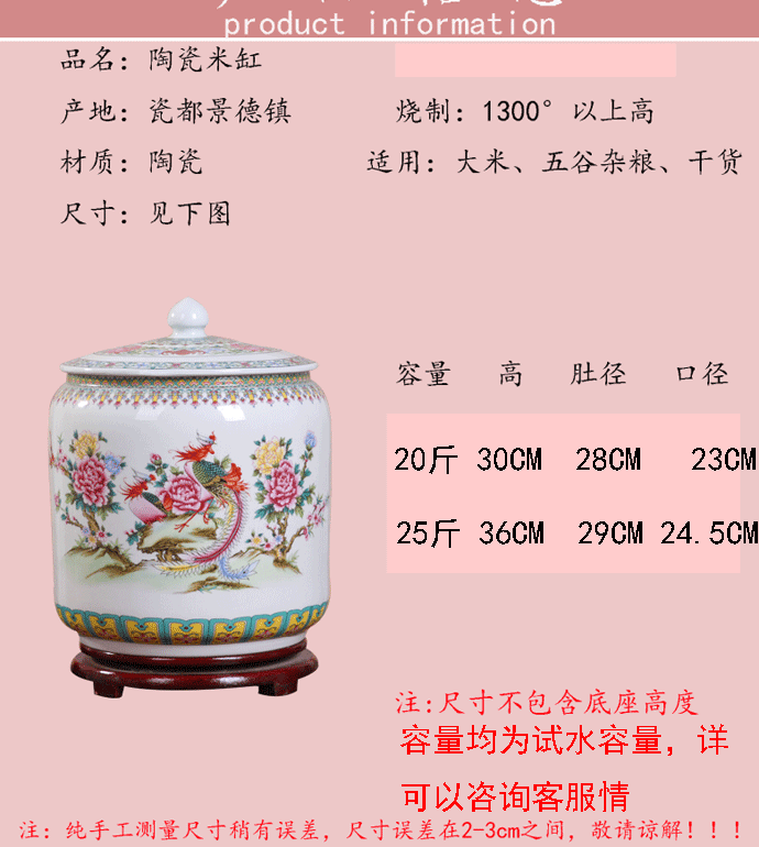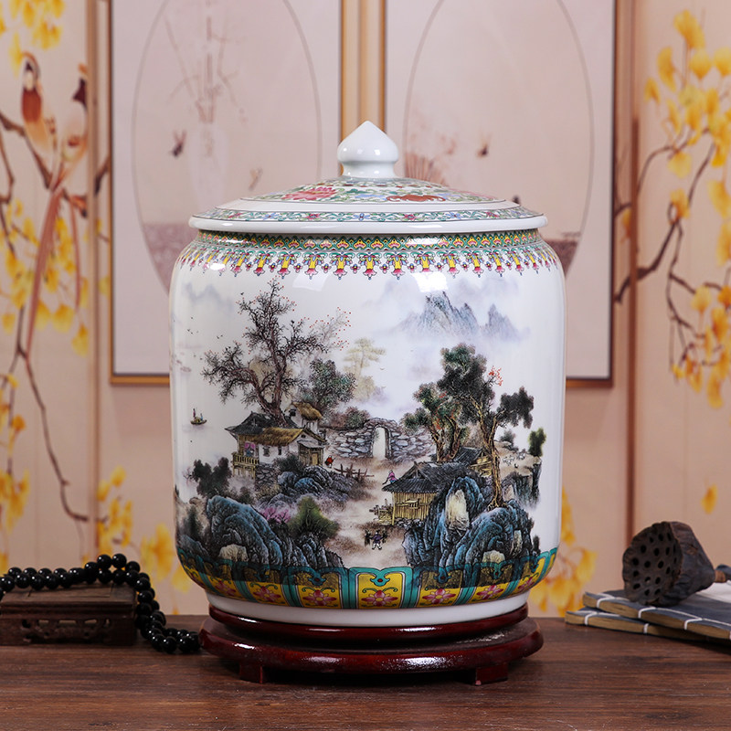 Керамический рисовый цилиндр Jingdezhen 20 Catties of Home Water Tack с крышкой с крышкой для герметизации влажности -Проницаемой червячной муки.
