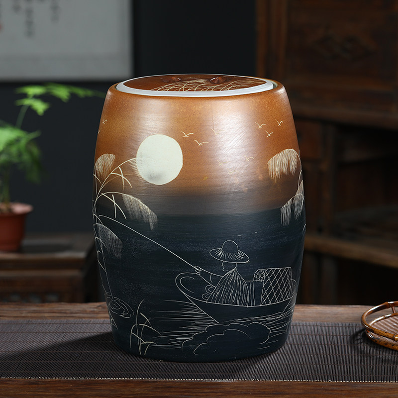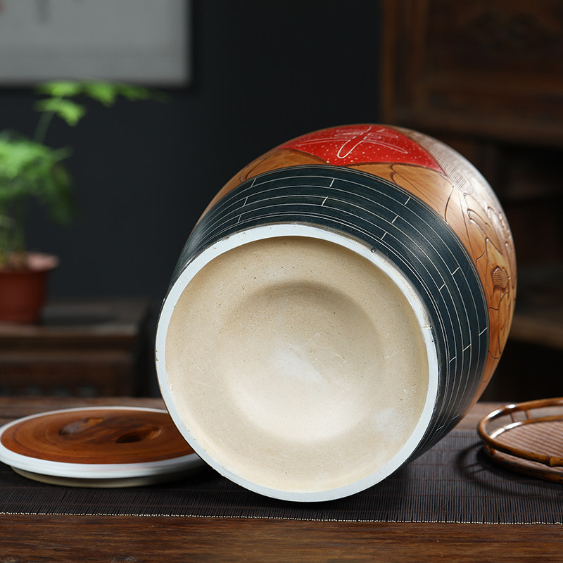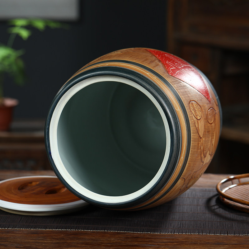 Керамический цилиндр для риса в Цзиндэчжэне, бытовой старомодный масляный цилиндр с крышкой, ящик для хранения риса, поверхность бочки для риса, герметичный резервуар, резной цилиндр для воды