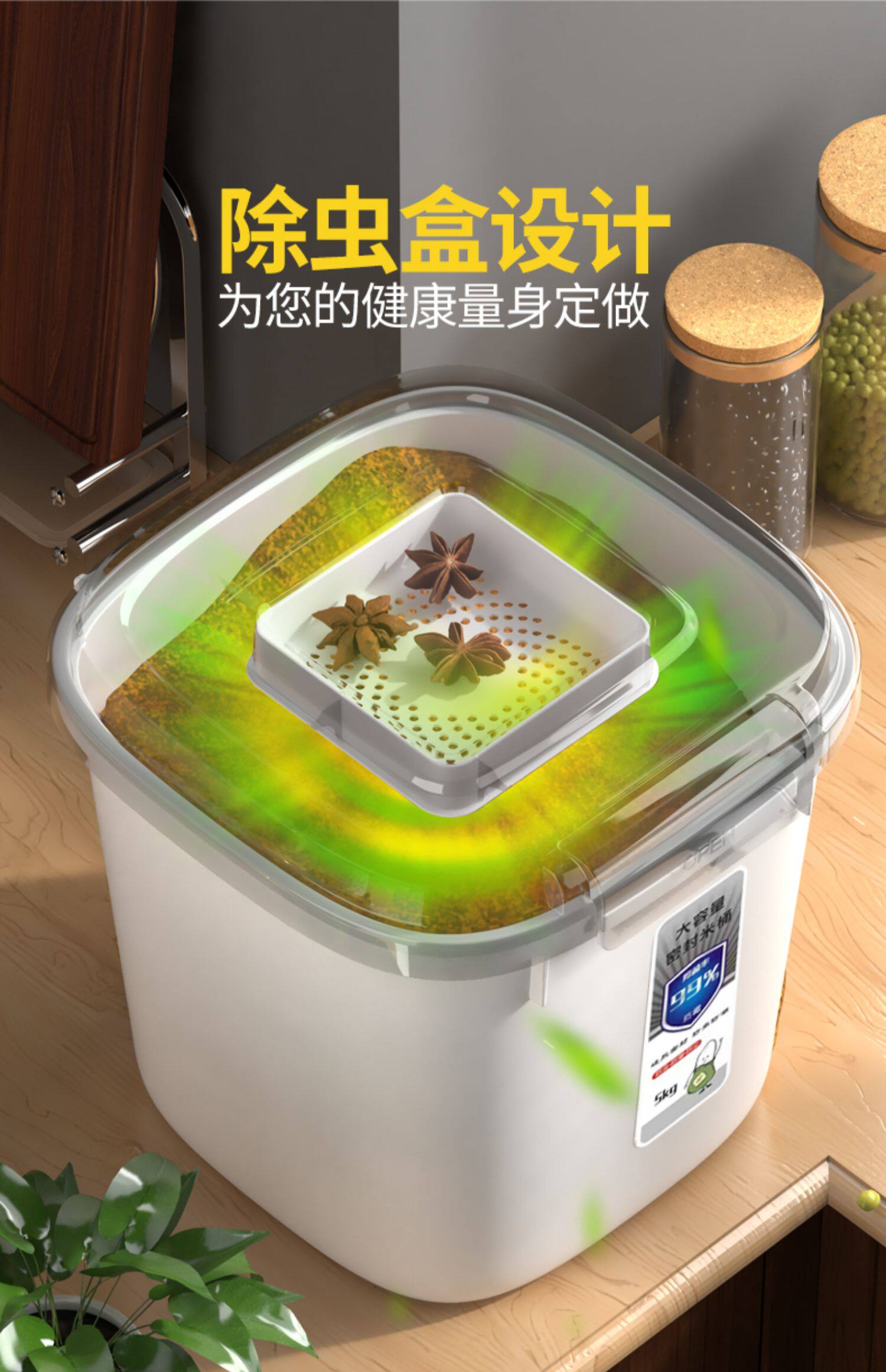 Сделайте рис ковш домашний рис, хранение ящика для хранения, контейнер, рисовый цилиндр рисовой коробка, рисовая ствола, герметизация дома влага -Проницаемая анти -инсективная бочка