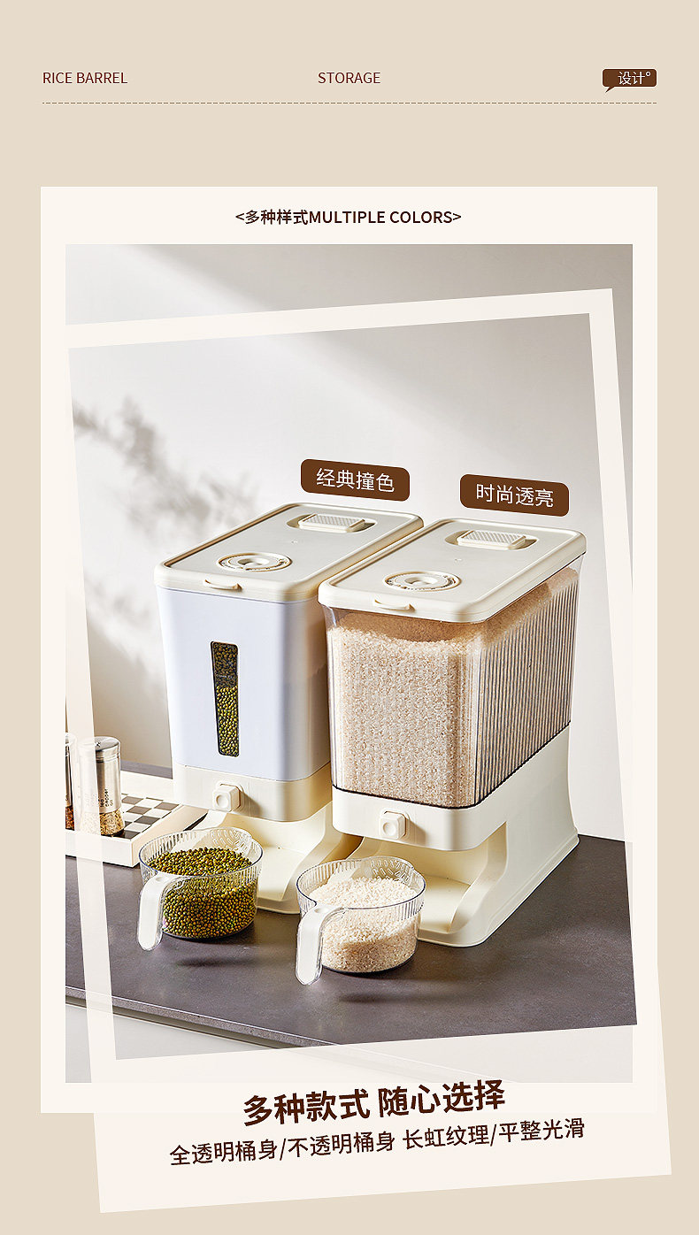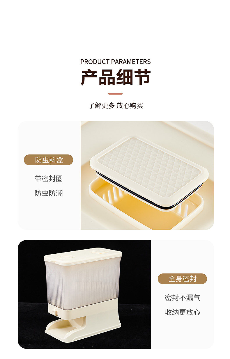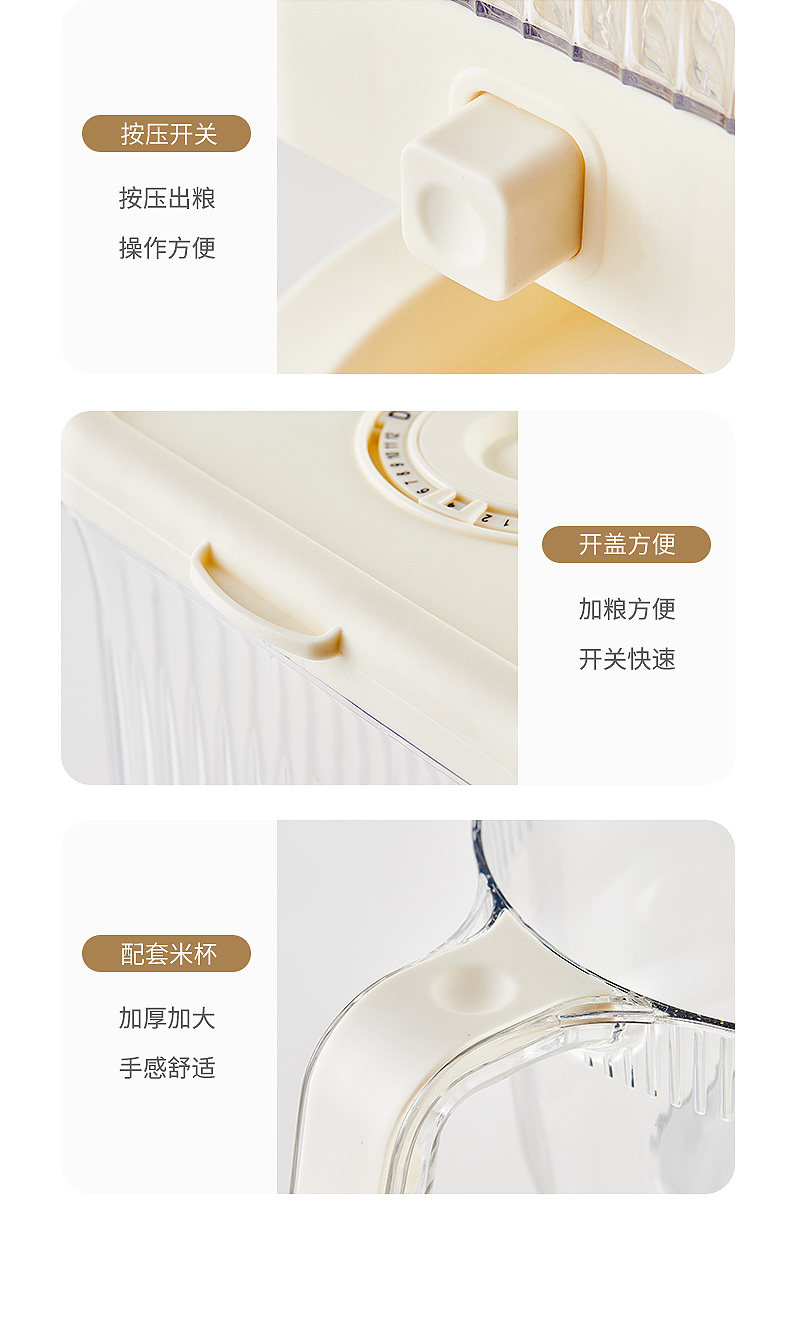 Ведро для риса, бытовой ящик для хранения грубого зерна нажимного типа, защищенный от насекомых и влаги, герметичный резервуар для хранения пищевого зерна, ящик для риса