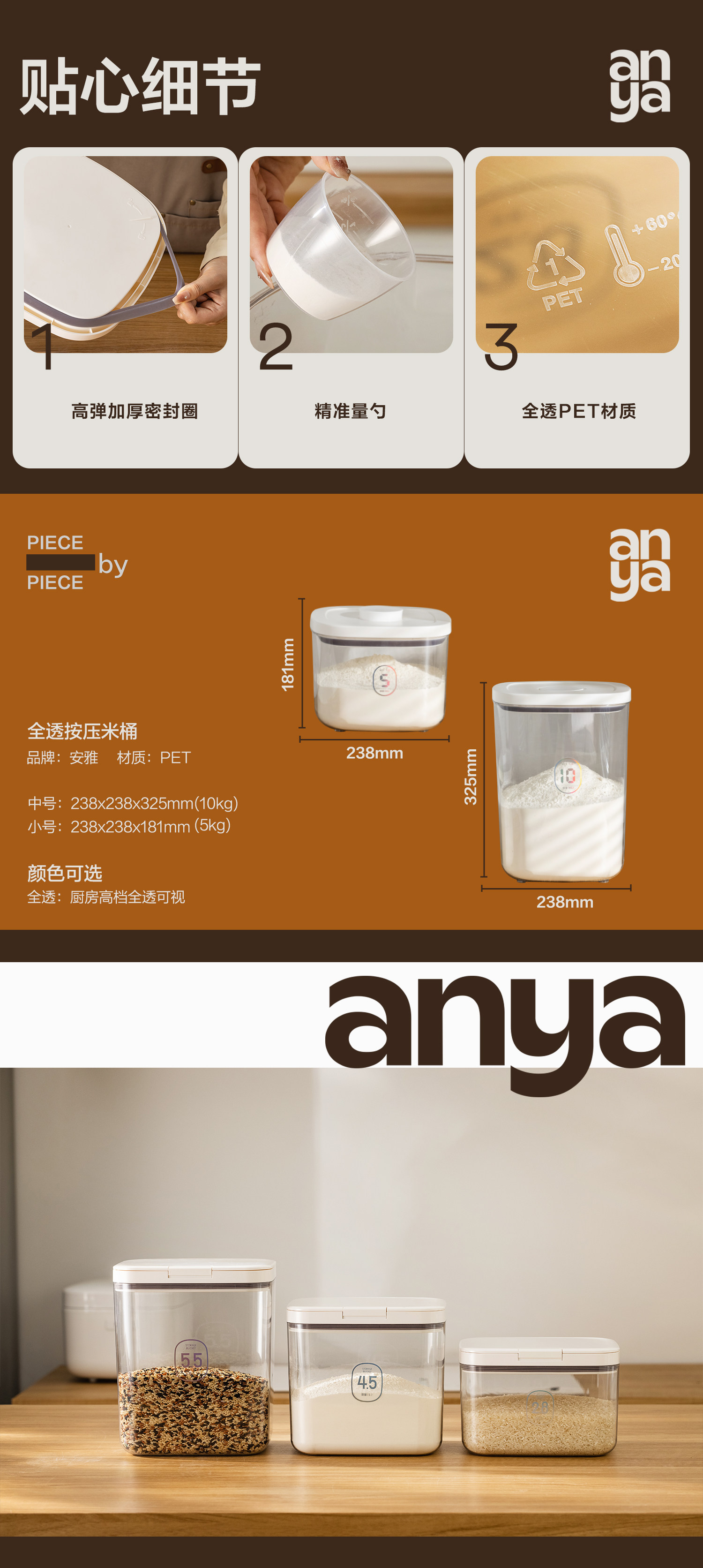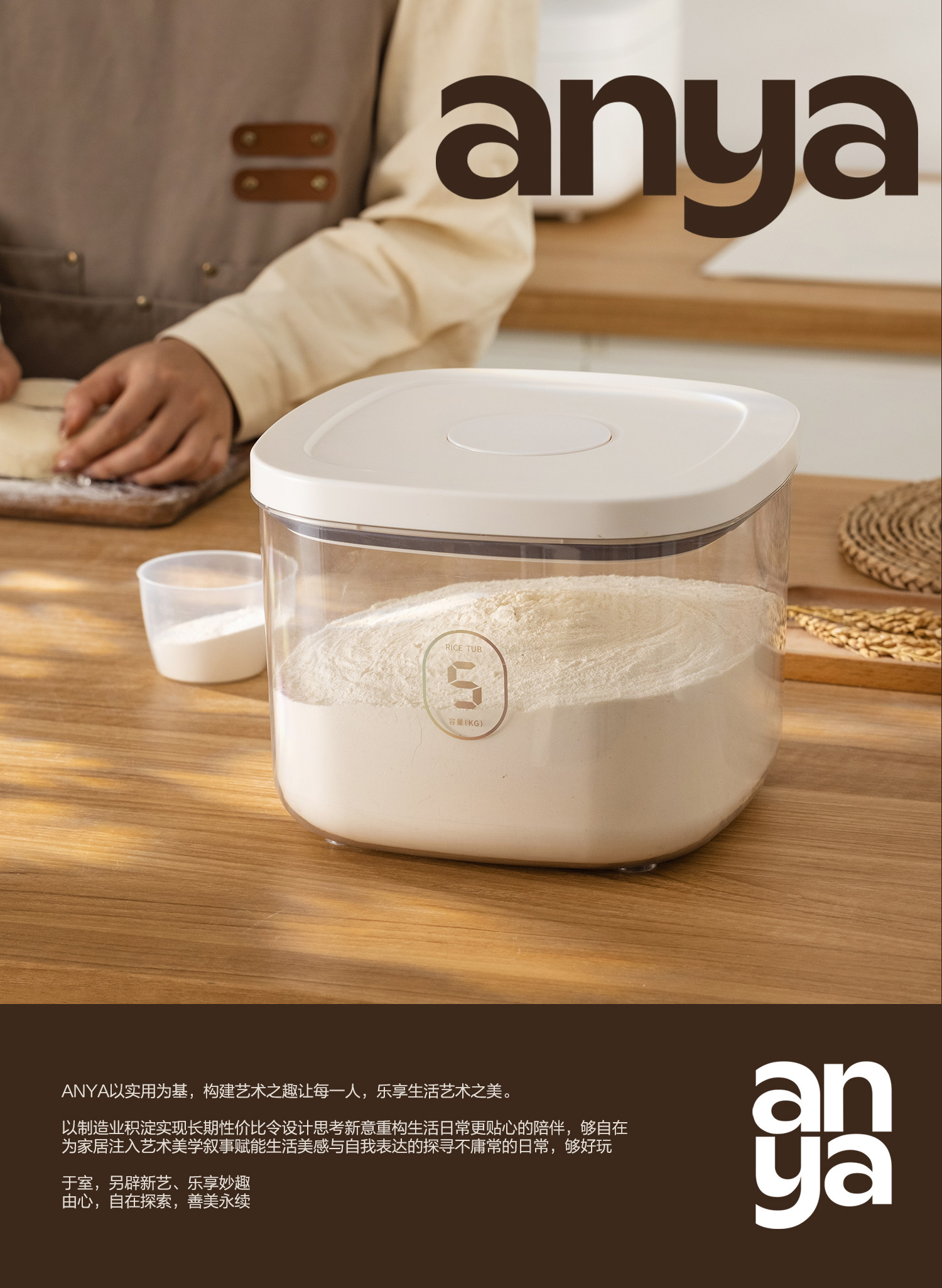 Ведро для муки Anya, резервуар для хранения муки, защищенное от насекомых, влагостойкое, герметичное, герметичное, для хранения пищевой лапши, бытовое ведро для рисовой лапши