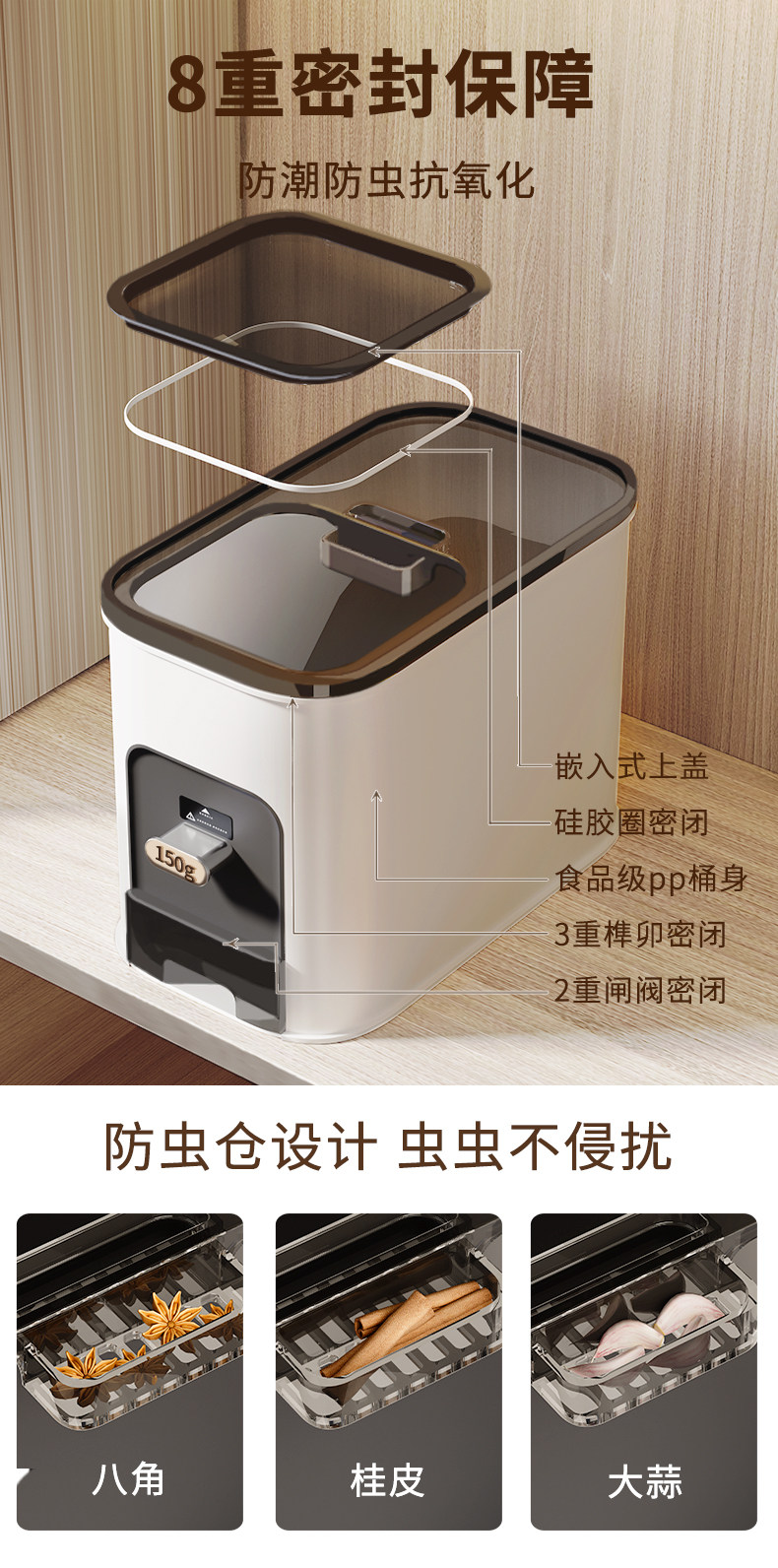 Элитная встроенная ёмкость для риса, новая коллекция, защита от насекомых и влаги