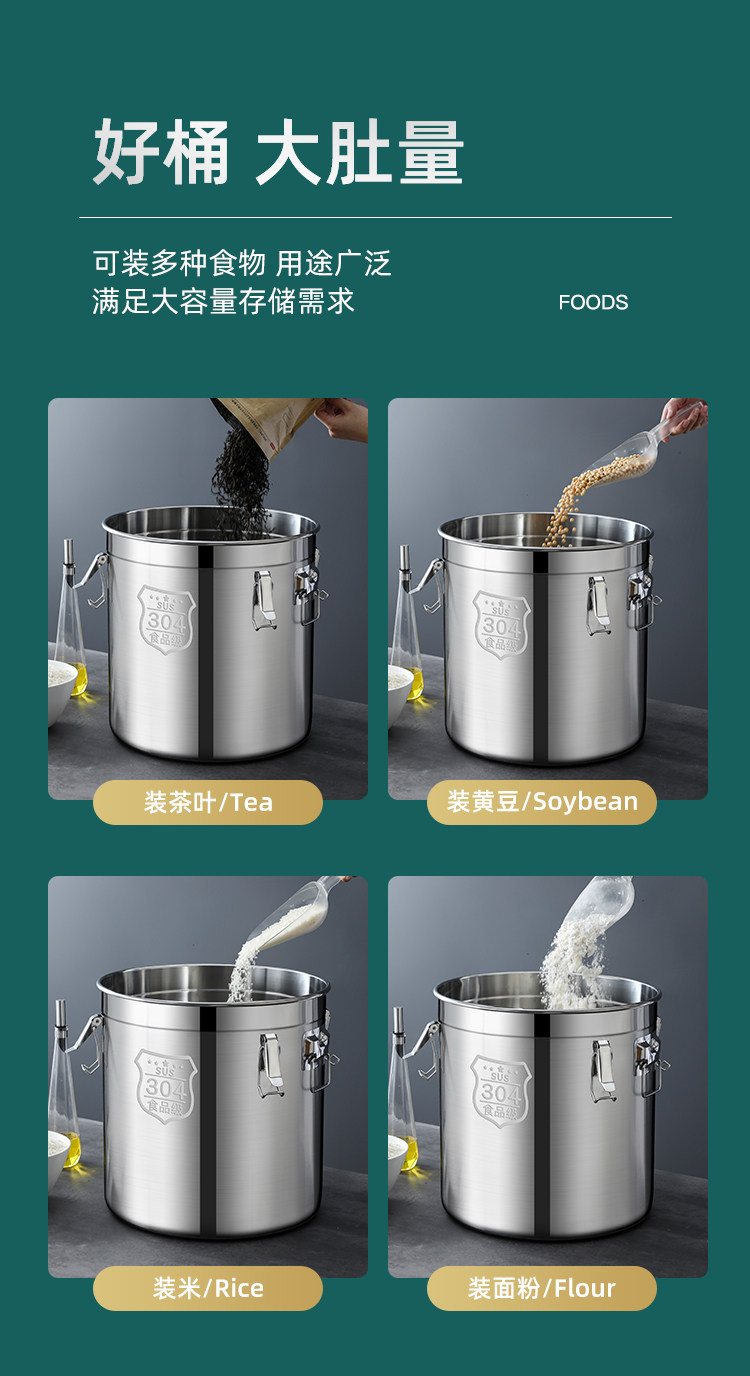 Влагостойкое ведро для риса, герметичное ведро с защитой от насекомых, ведро из нержавеющей стали 304, ведро для риса, домашнее утолщенное, 20 кошек, 50 кошек, резервуар для хранения муки