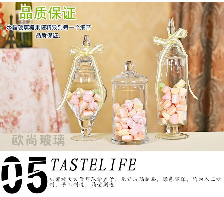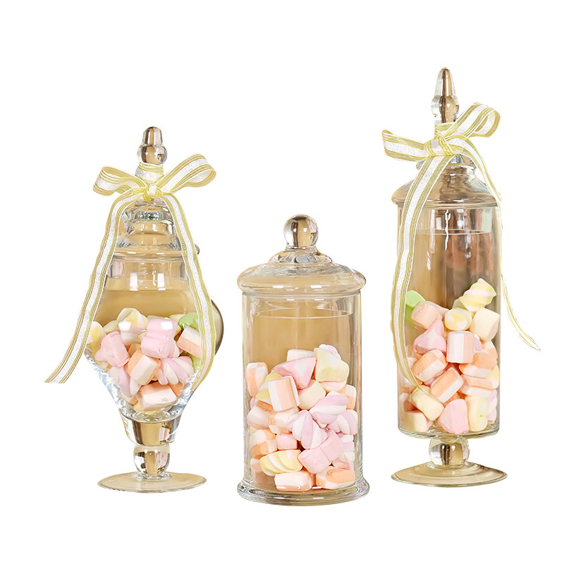 Европейский стиль стеклянные конфеты крышка крышки с высоким уровнем прозрачного хранилища мягкое декоративное сахарное окно свадебная мебель домашняя украшение