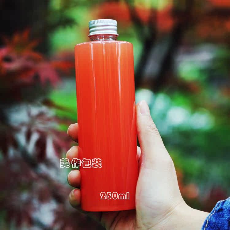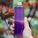 - AJ250 Прозрачная бутылка с плоским плечом и серебристой алюминиевой крышкой.