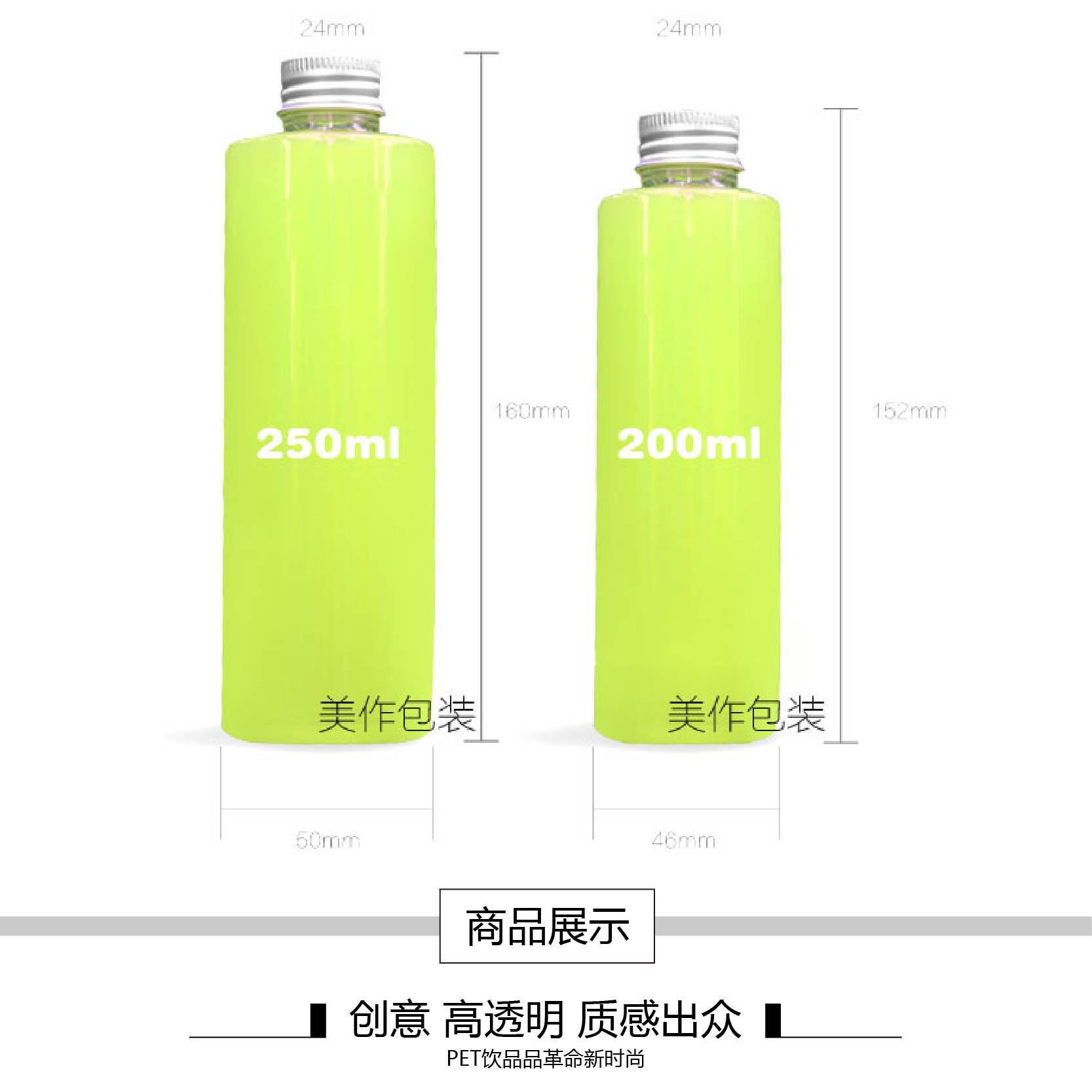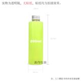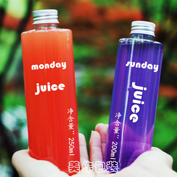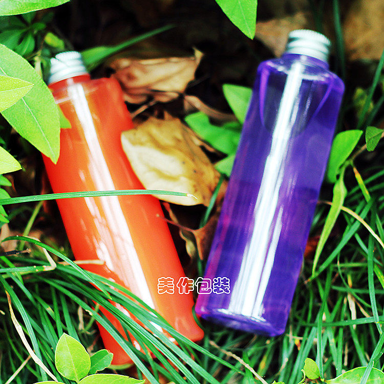 - AJ200 прозрачная бутылка с плоским плечом и серебристой алюминиевой крышкой.