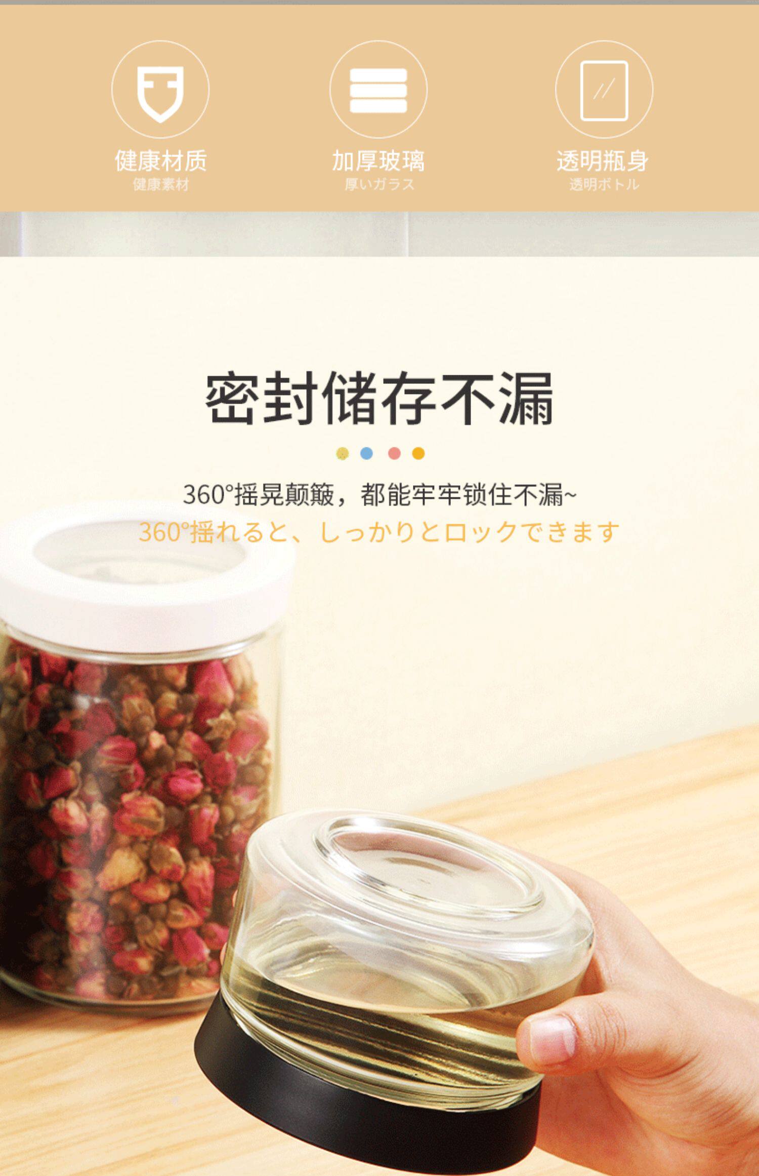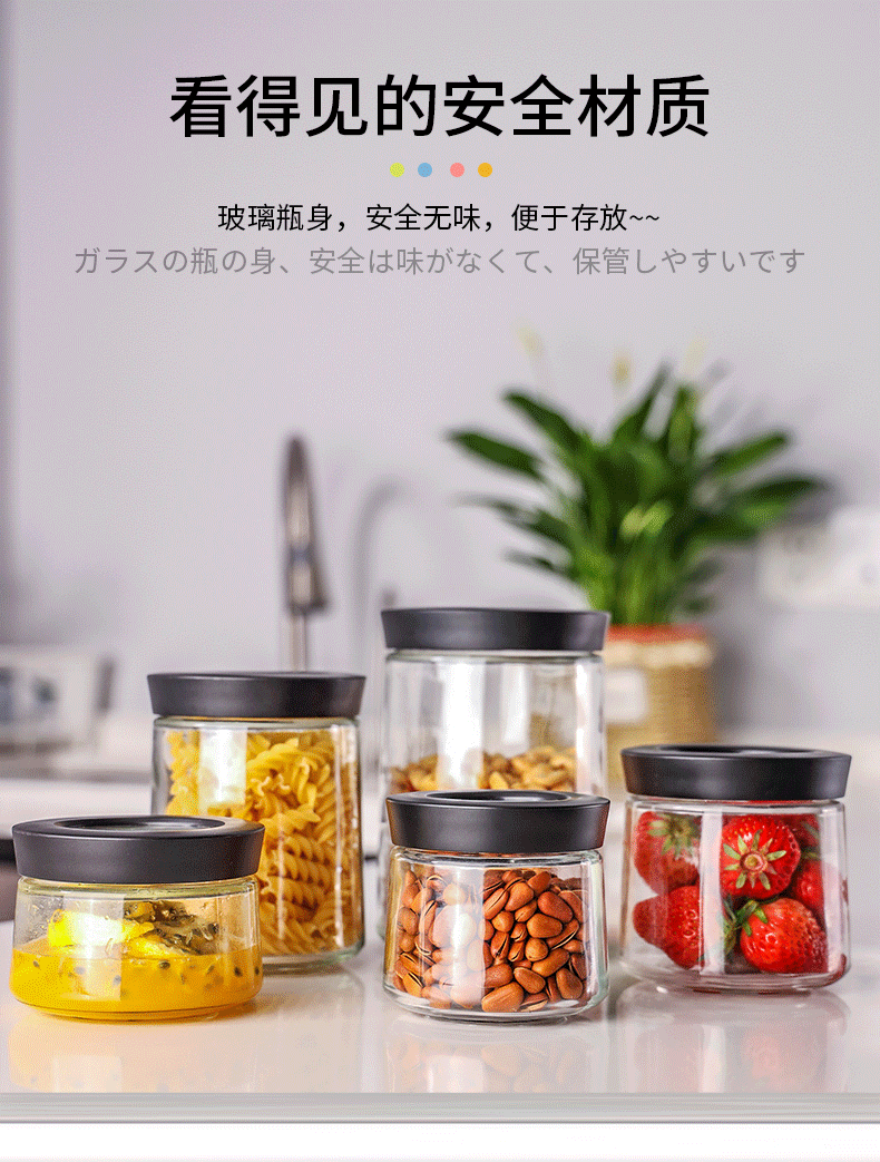 Японская стеклянная герметичная банки с пищами -Крейнь -хранение танкеры влага -реакция на детское молоко розовое конфеты банка