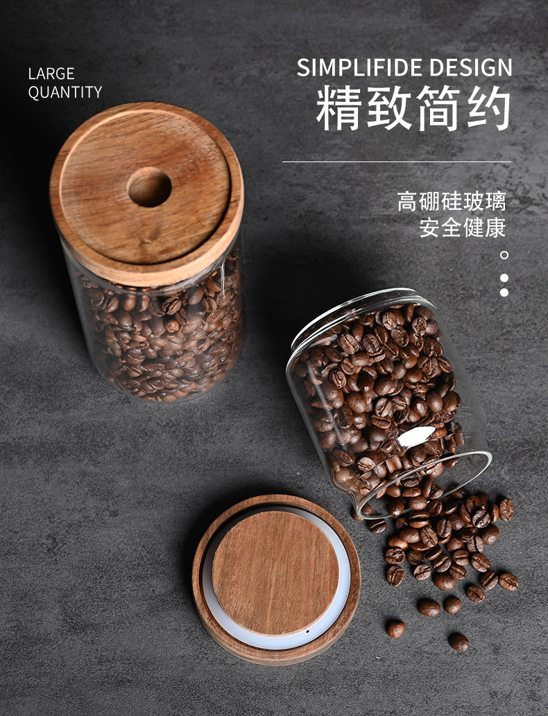 Акация деревянная крышка кофейная фанатичная банка, без высокого роста стеклянного пищевого зерна, зерновый молочный чай