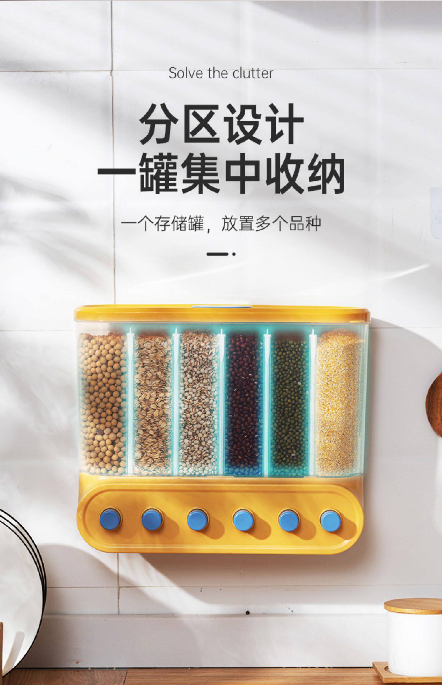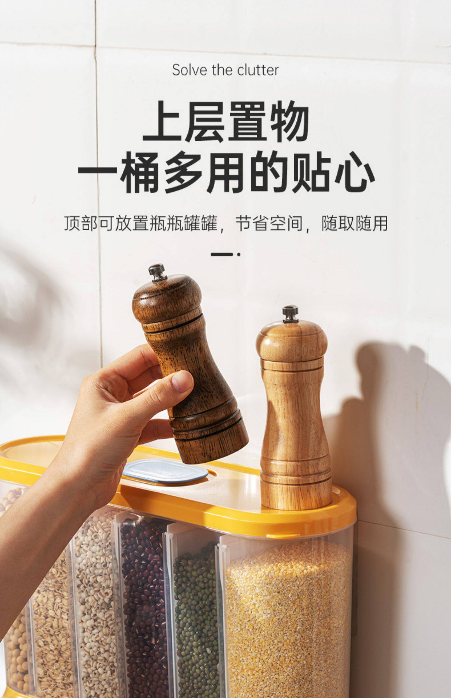 Стена -кухонная кухонная банка для герметизации, разделенная на ящик для хранения зерна сетки.