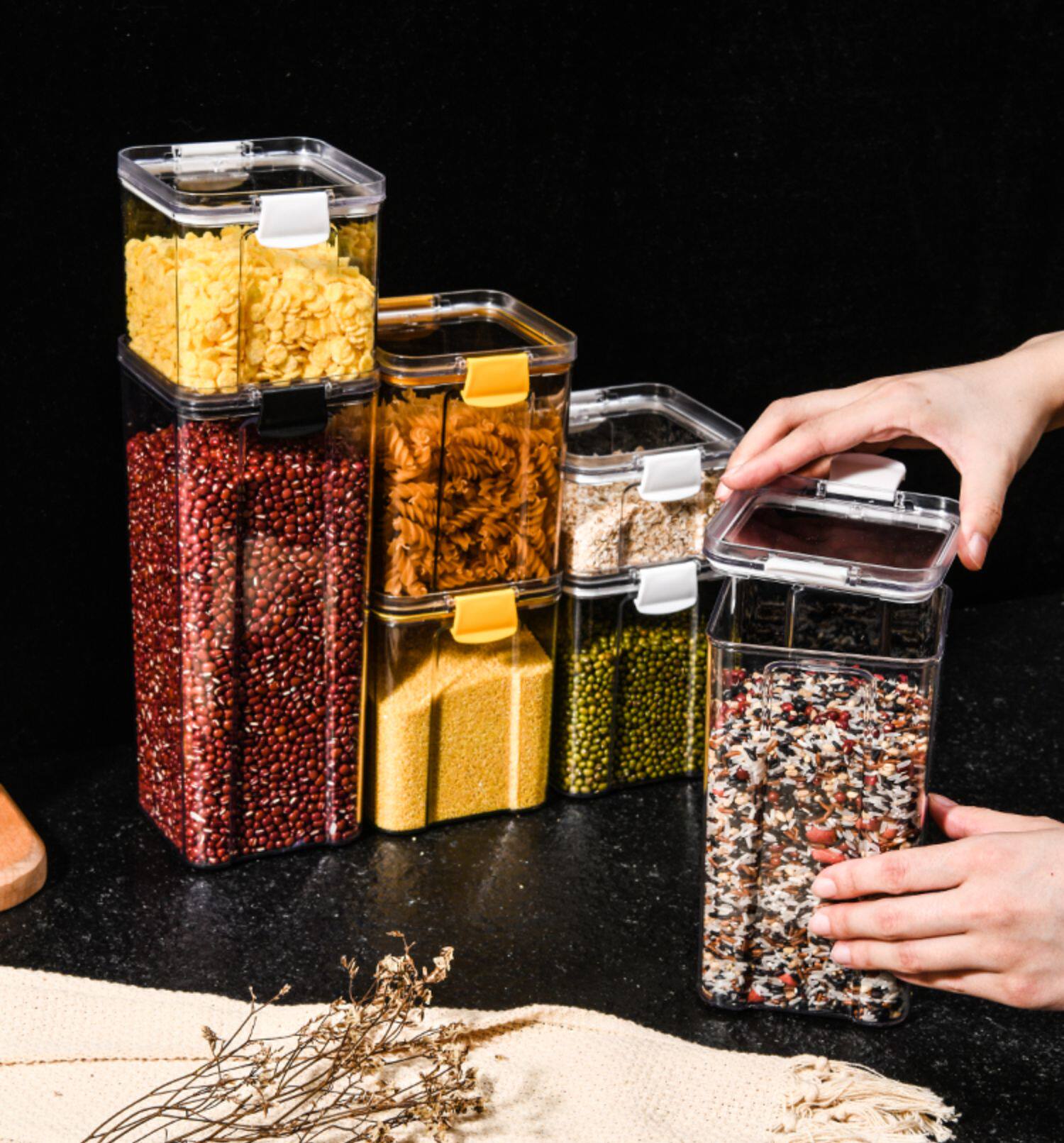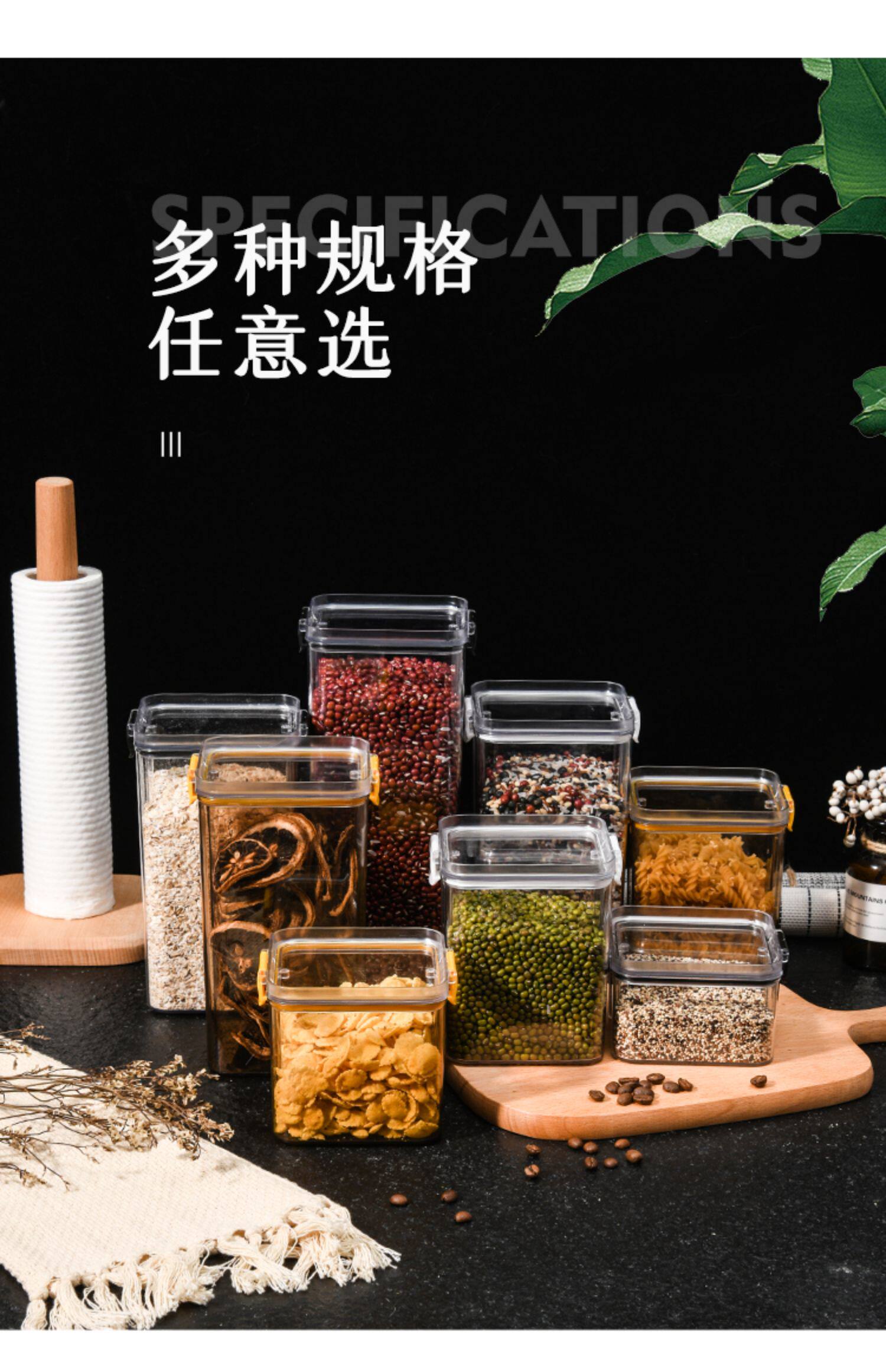 Герметичные банки, пластиковый чай, зерновые и зерновые, кухня, кухня большие грузоподъемники