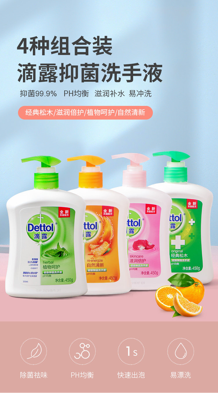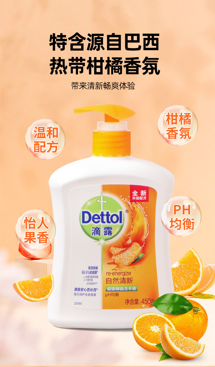 Dettol/滴露 Антибактериальный свежий санитайзер для рук для мальчиков и девочек, 450G