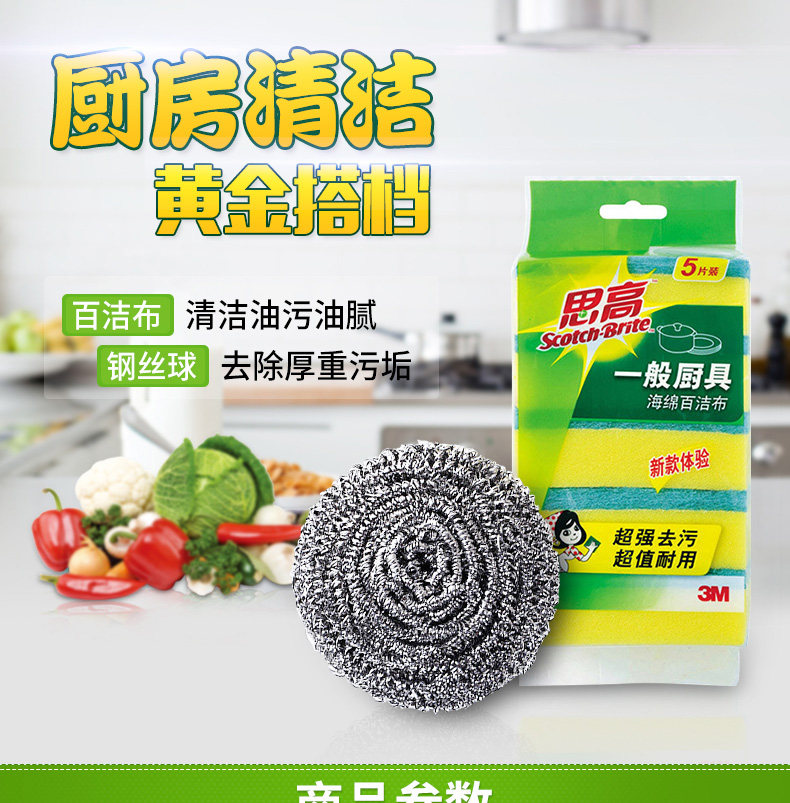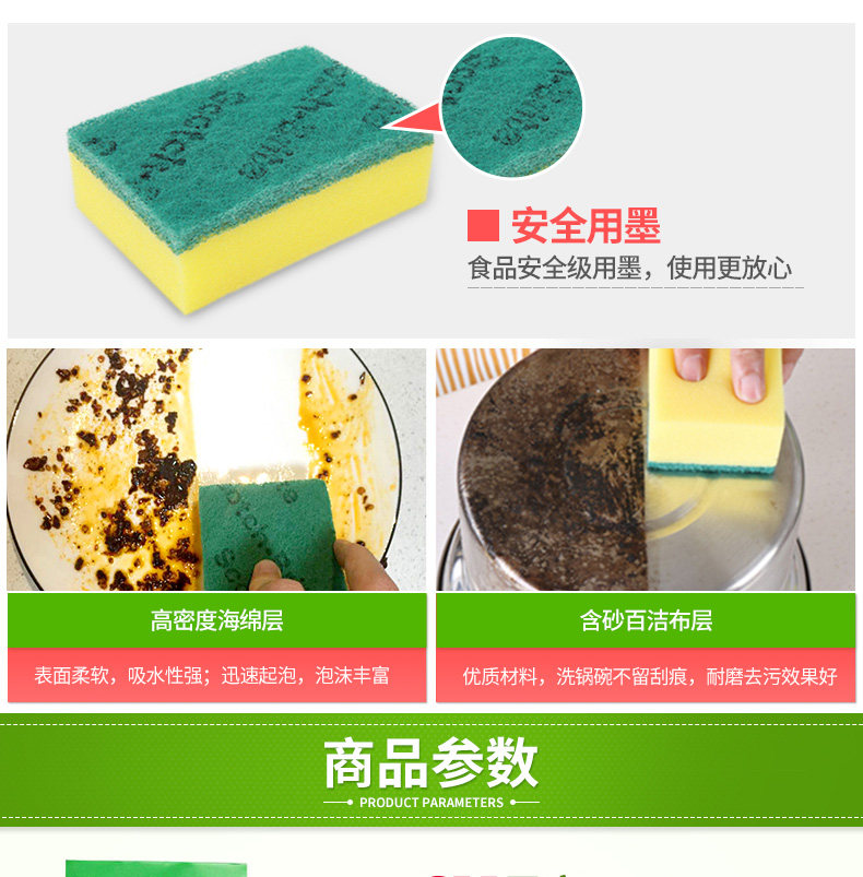 3M Sicao Sponge Baijie Clate Kitchen Cratching Pot Bouns Очистка нелегко приложить масло, утолщено и выведено 10 кусочков