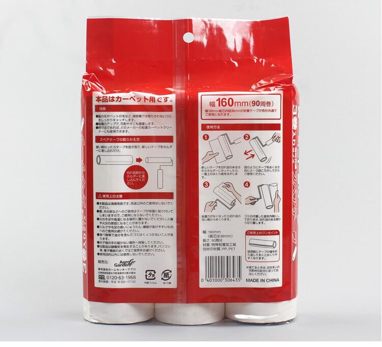 Японская липкая бумага может быть разорванной 16 -сантиметровой заменой ядра. Домашнее всасывание волос, свернутая бумага, одежда липкая пыль ролика щетка