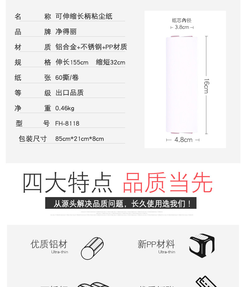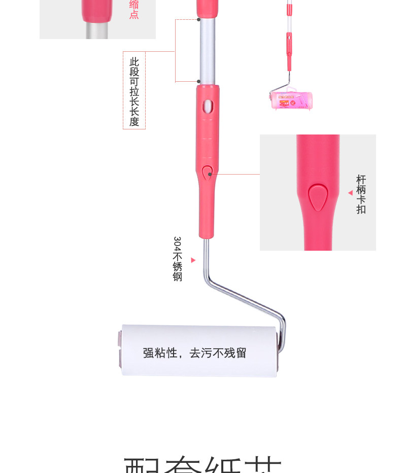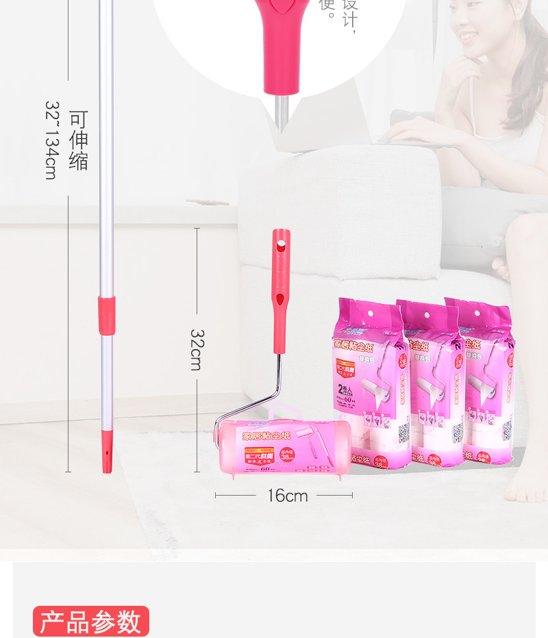净得丽 Телескопический стержень на пол клея с длинной ручкой разрывая одежда для шерсти барабан 16 см. Клейтная бумага Большой размер