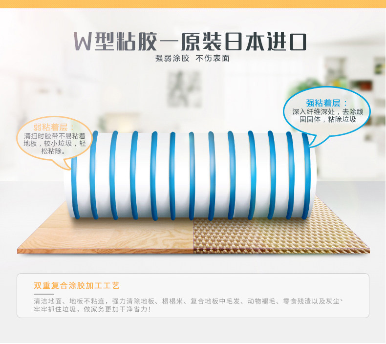 妙洁 Консолидированный пыльный чистящий пыльный ролик, разрывая всю супер сильную одежду генерального пола, погруженное в бампер для волос