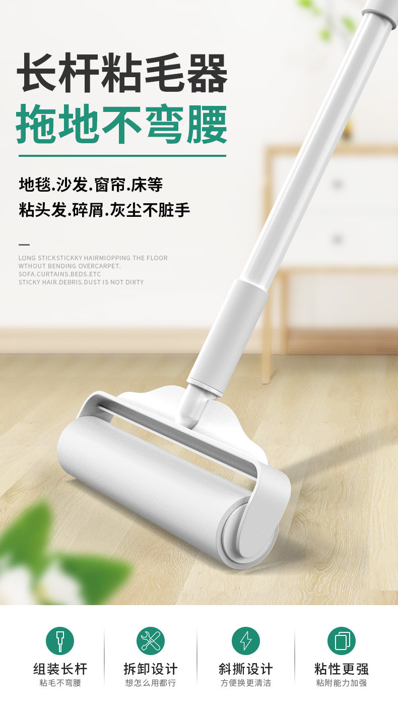 Липкий шерстяной ролик с длинной ручкой большой удлинитель, а домашний ролик.