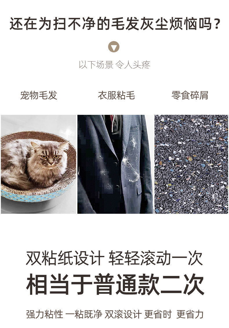 Липкие волосы шерсть двойной валик с помощью бумаги с пушистым артефактом с разрыва