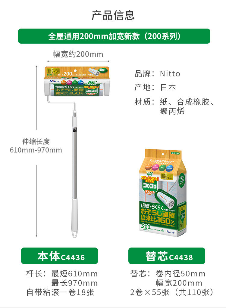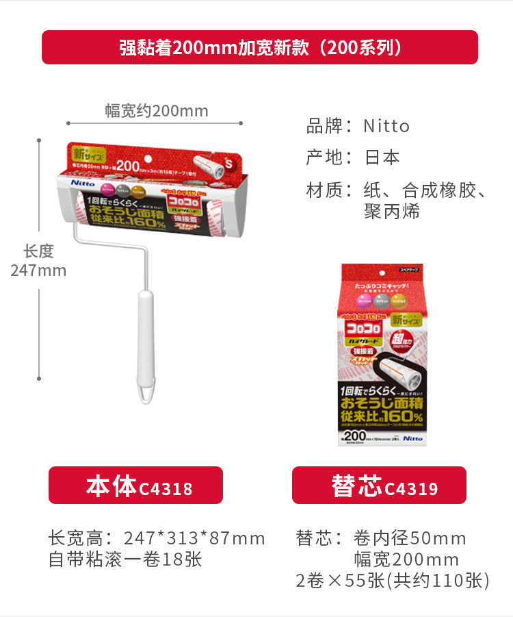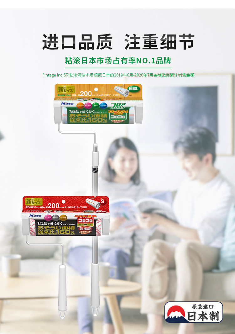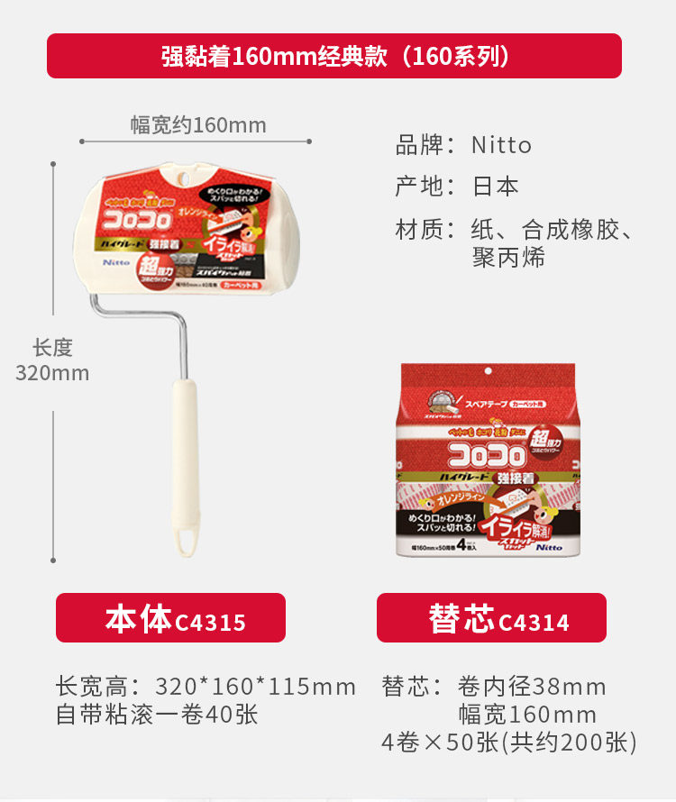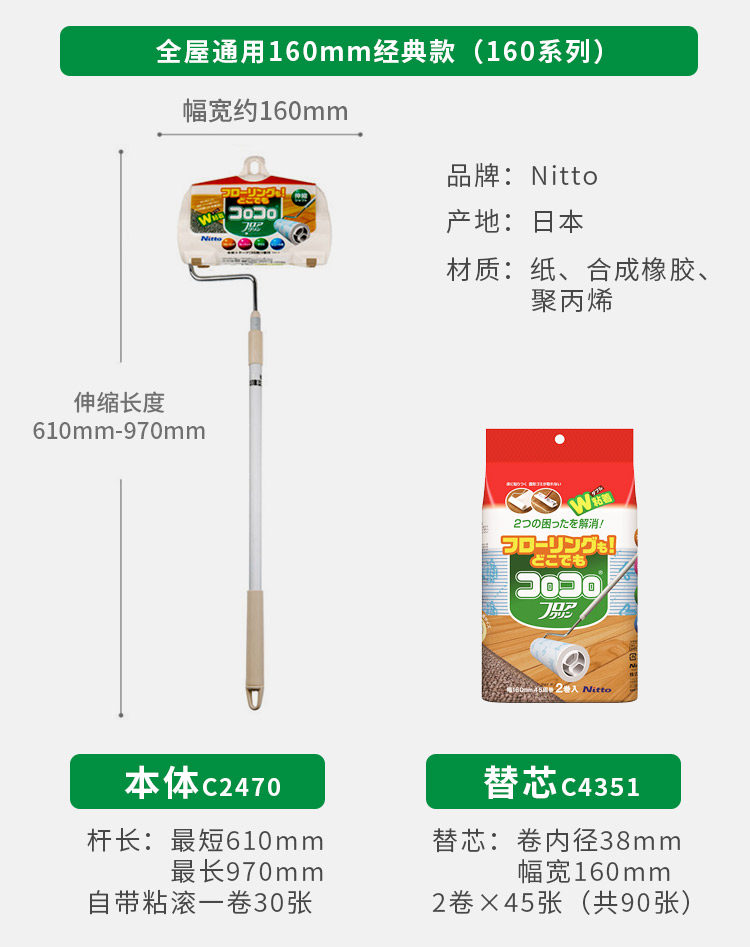 Япония Nitto Colocolo Мощный липкий шерстяный ядро может разорвать ковер липкий ролик на ковром -типе.