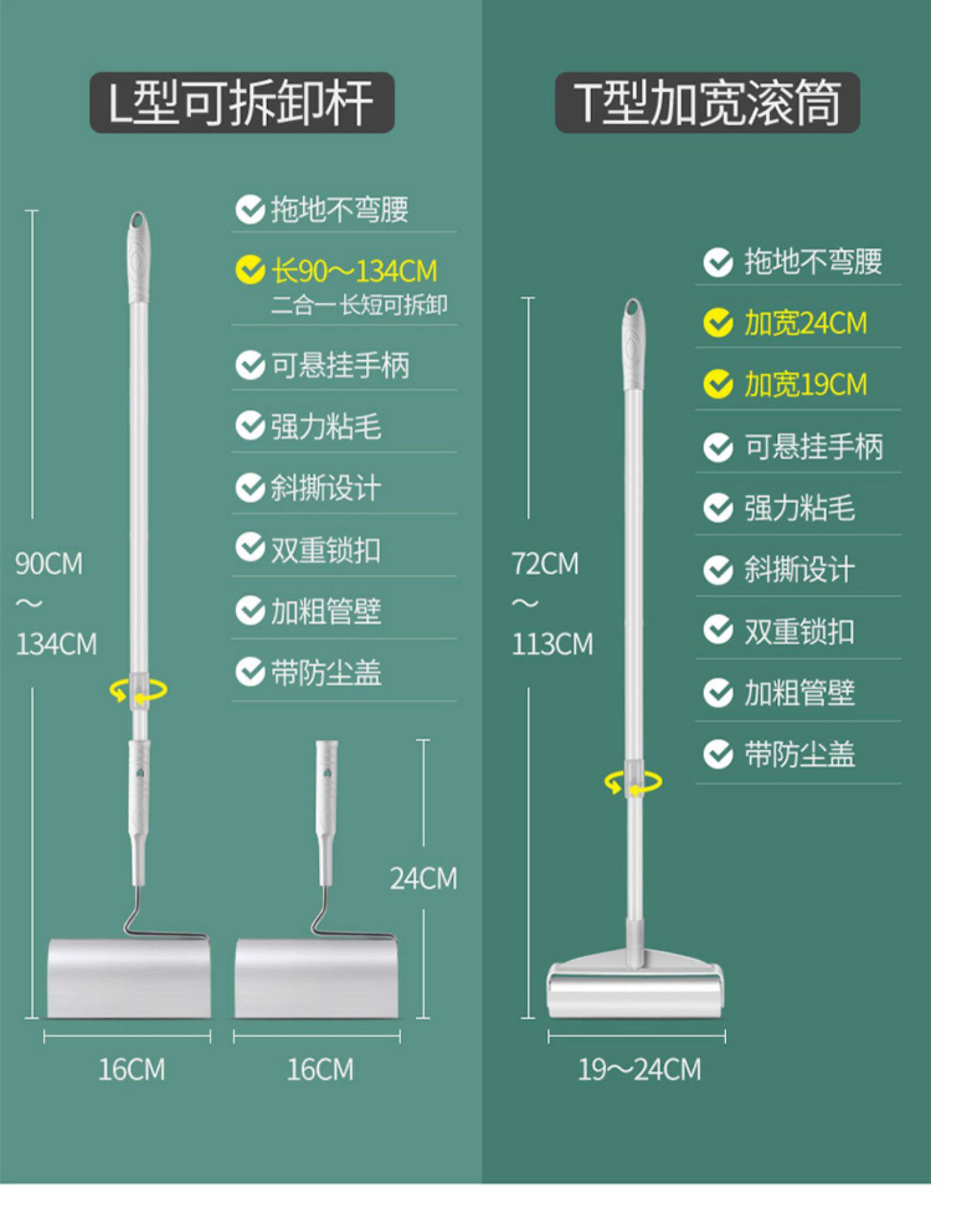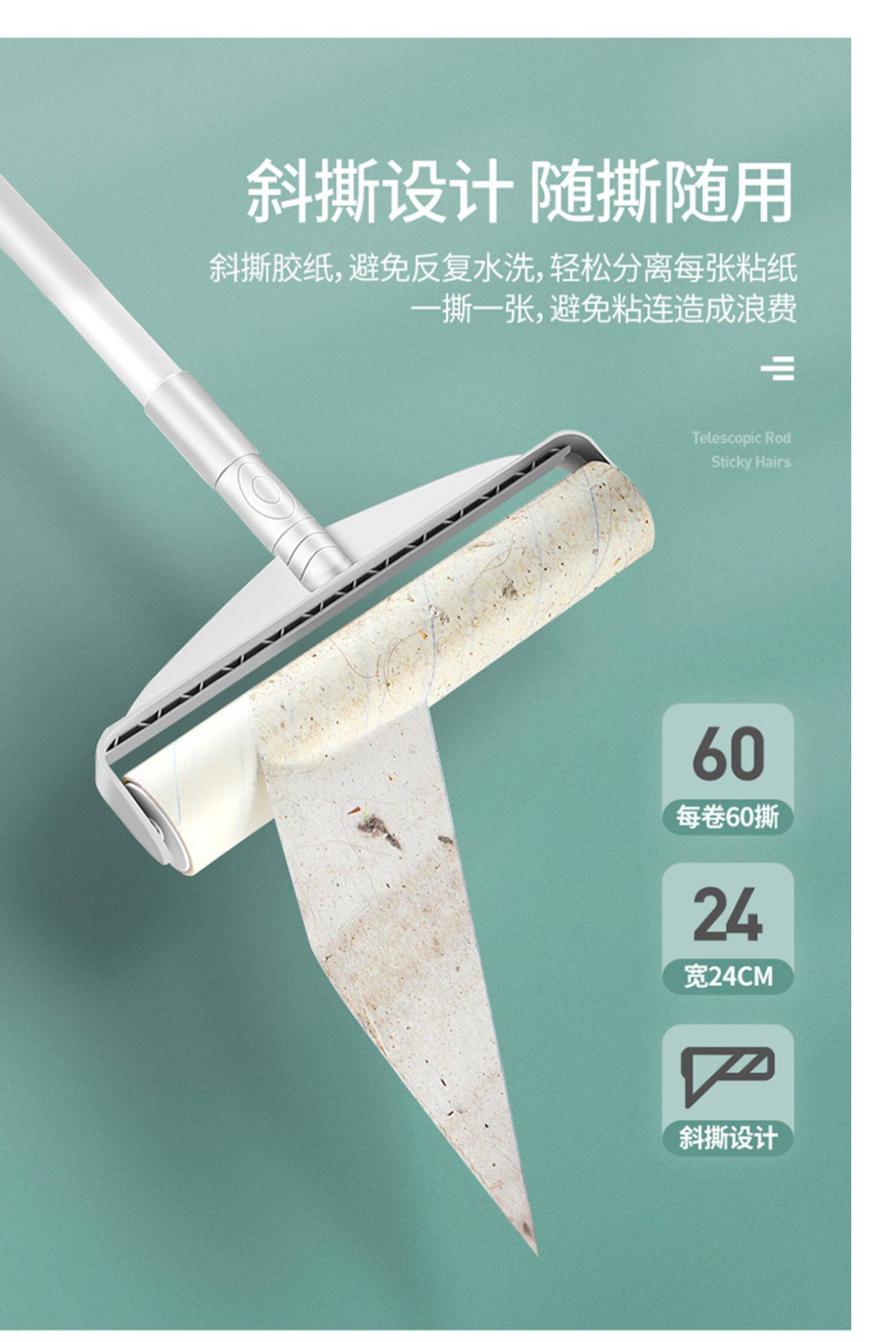 Липкий барабан для волос, длинная ручка, катая пыль, пыль, ролика для волос, большой удлиненный домашний пол до кошачьего погружения пушистого артефакта