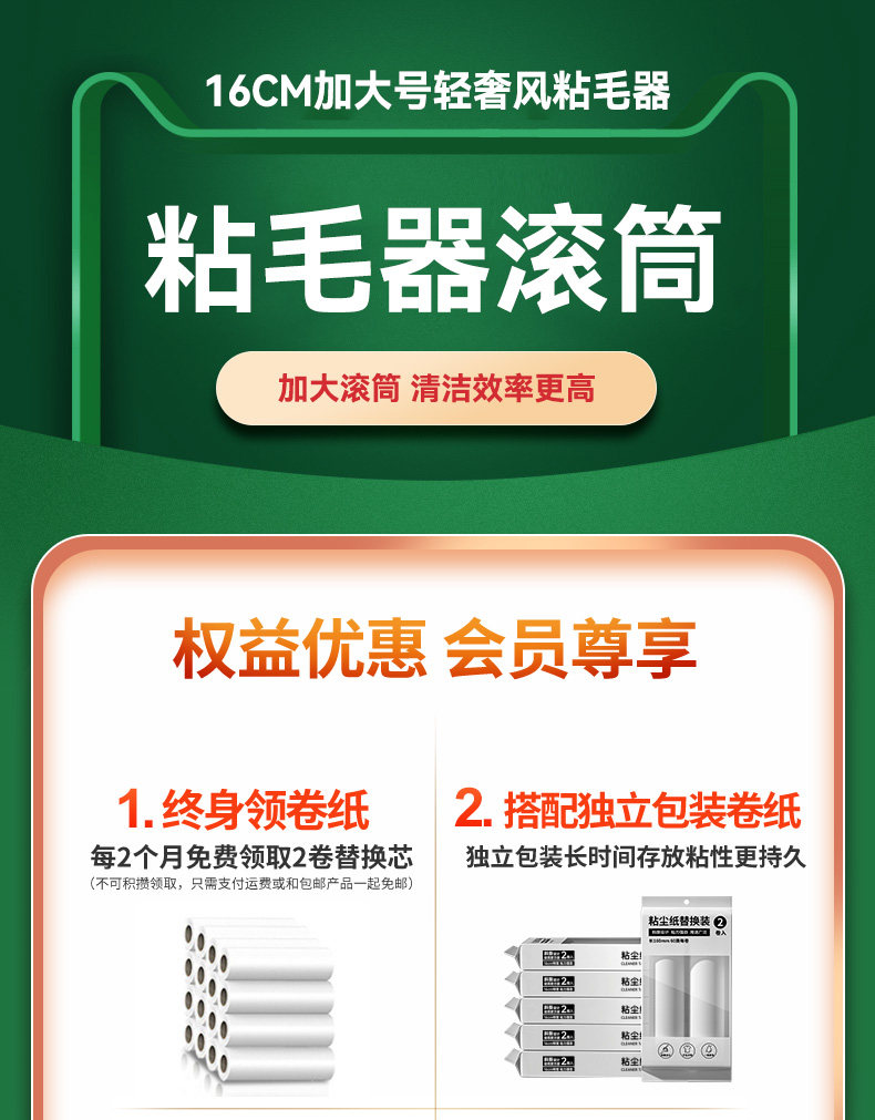 - [⭐ Рекомендуемый набор] Light Luxury Green-16см Расширенная ручка +9 рулона (всего 540 разорванных)
