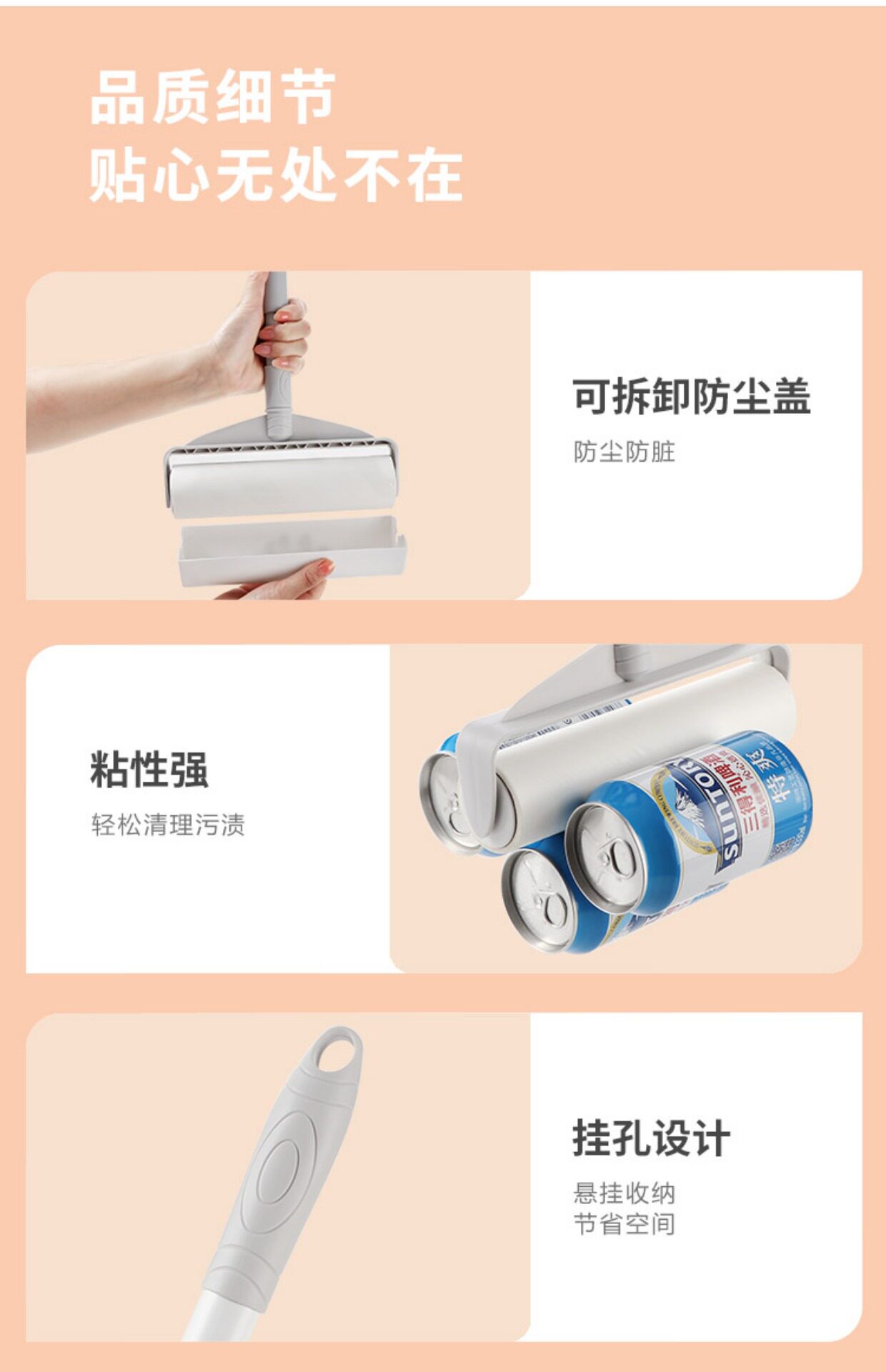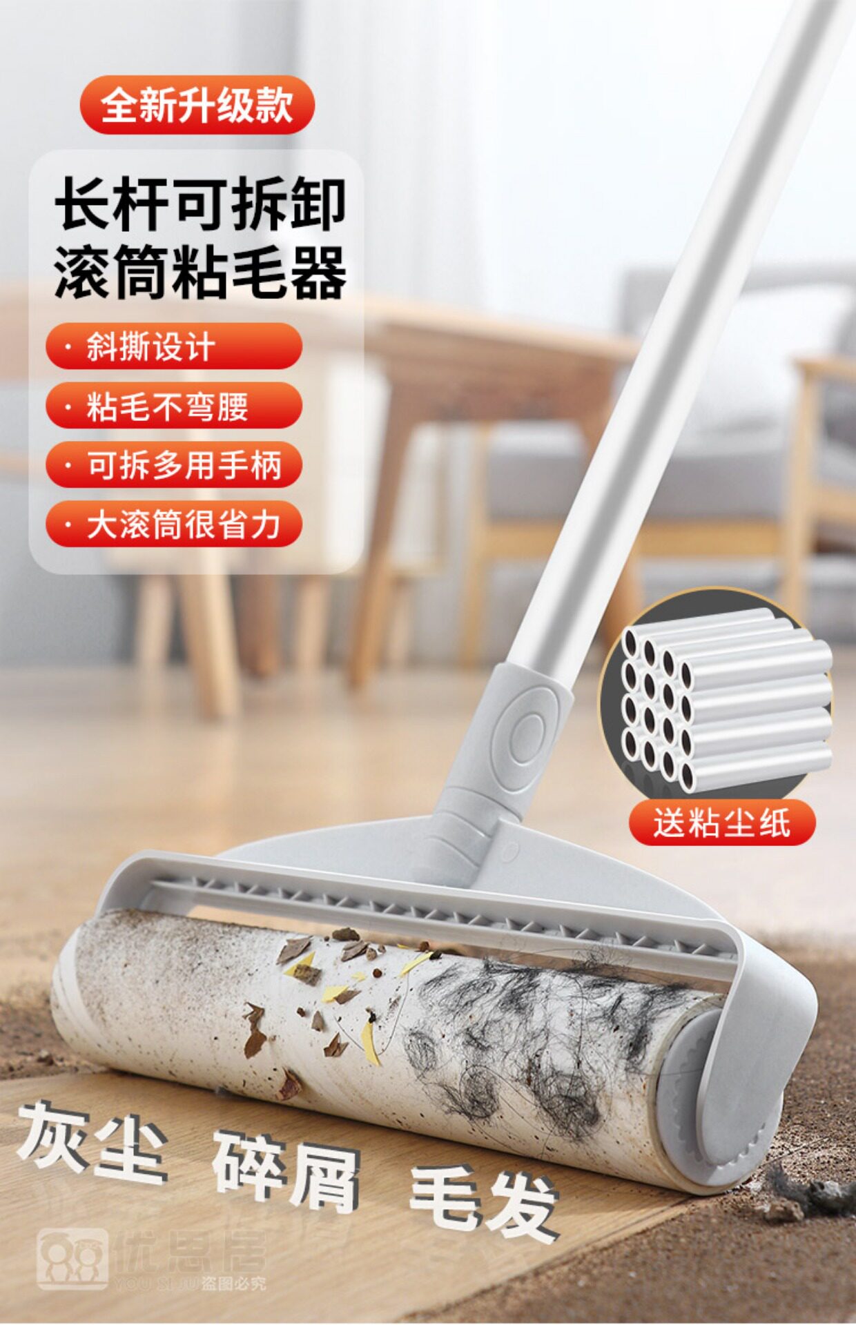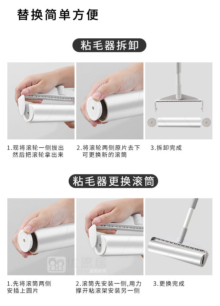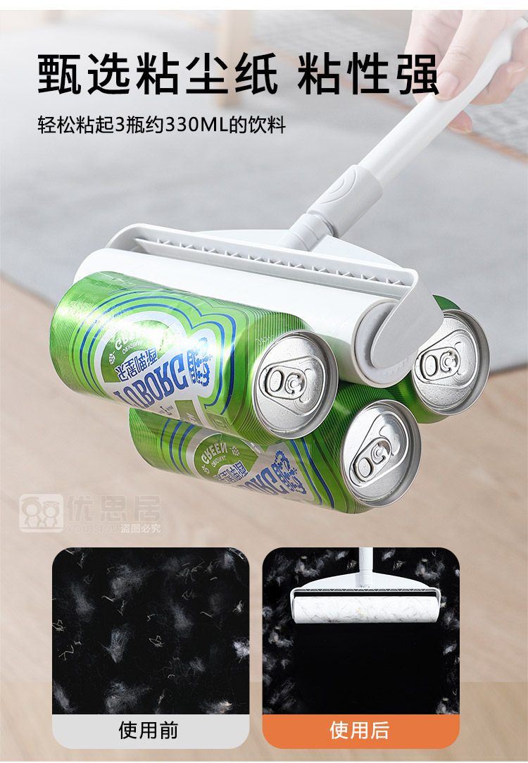 Липкий барабан для волос, длинная палочка с длинной стержней, большой липкий бумажный артефакт, пылевой ролик разрыв бумажной кровать.