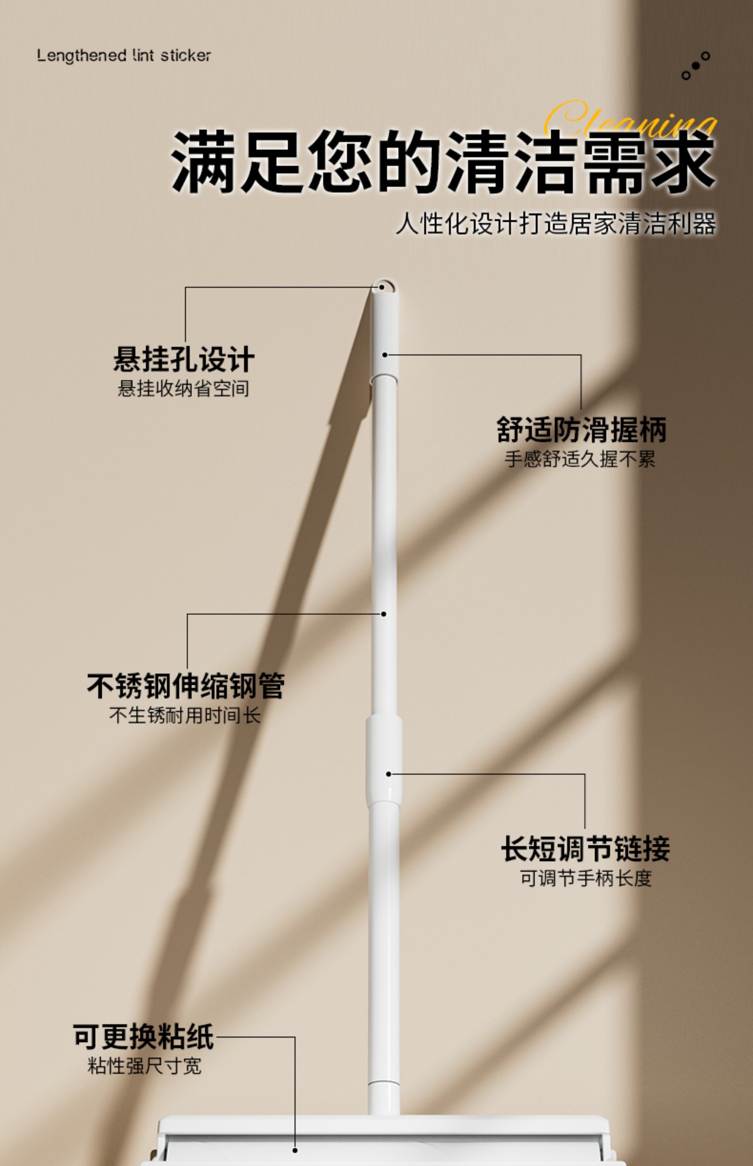 居家家 Липкие волосы роллер домохозяйство длинные полюсные телескопические волосы Удаление поверхности пола