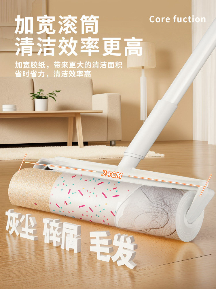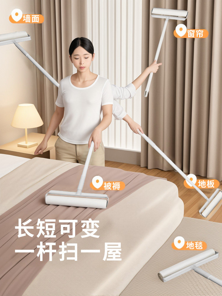 Ролик для волос, длинный шест, большой расширенный бытовой ролик, щетка для пола, липкий валик для пыли, валик для всасывания волос, липкий артефакт для волос