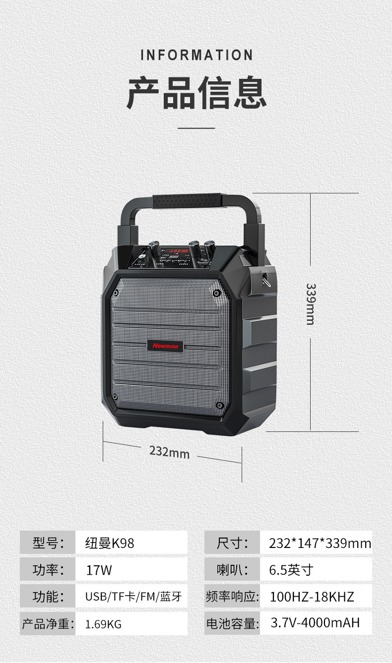 纽曼 Square Dance Sound Outdoor Disceer K Song большой громкость Bluetooth рука -рука -рука с портативным маленьким домашним игроком