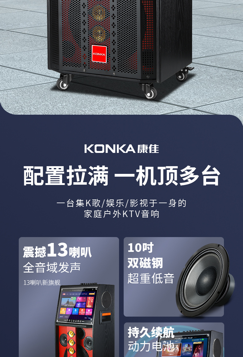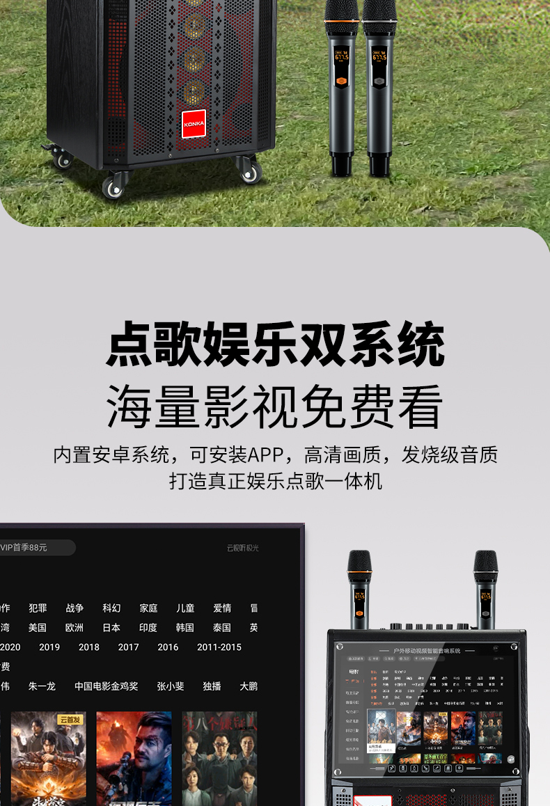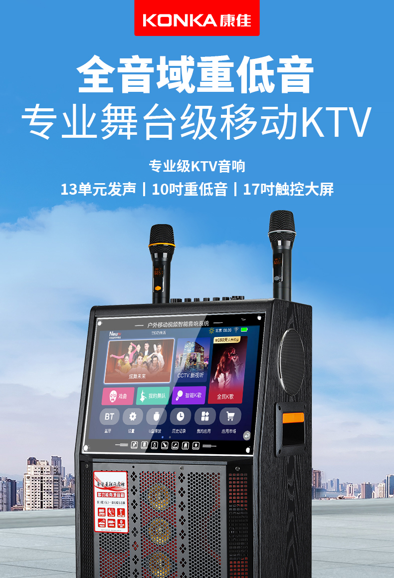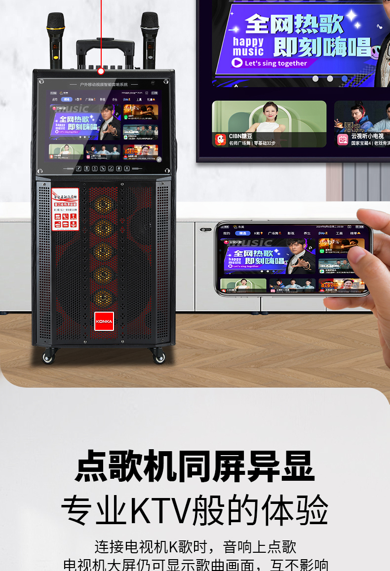 Konka Outdoor Plaza Dance Sound Band Display Screen Sound Card Dip -in -Н -One Ktv Singing K Song Dinger
