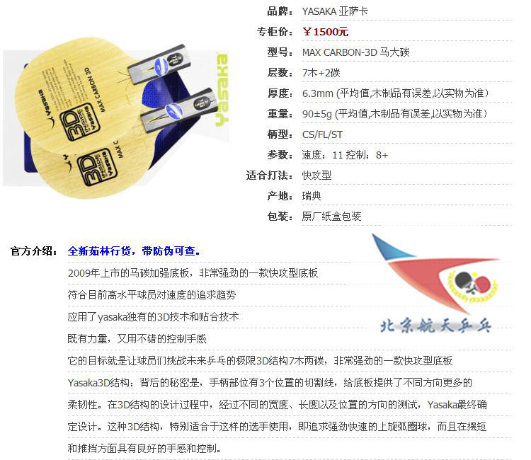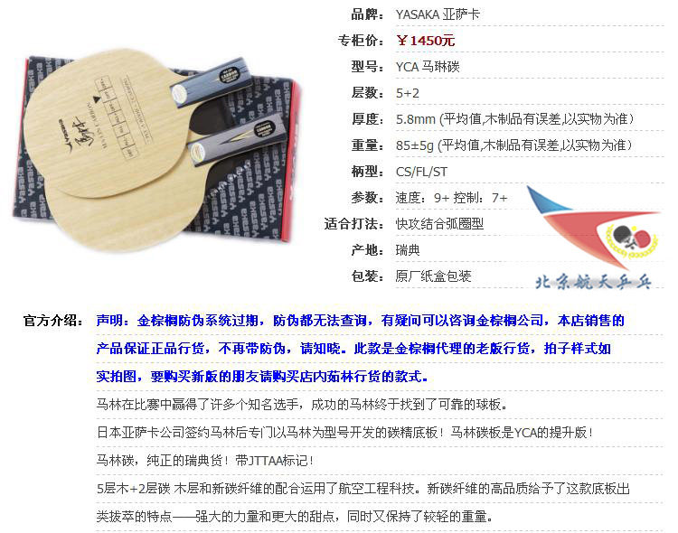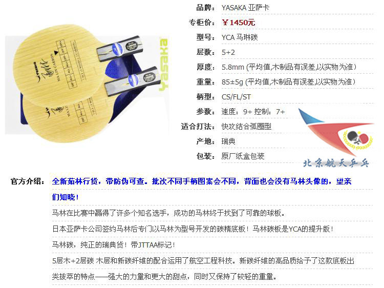 Аэрокосмическая пинг -понг доны доны Yasaka Yascamalin YSC LOSE Soft Carbon Carbon YCA Maline Gas Carbon 3D