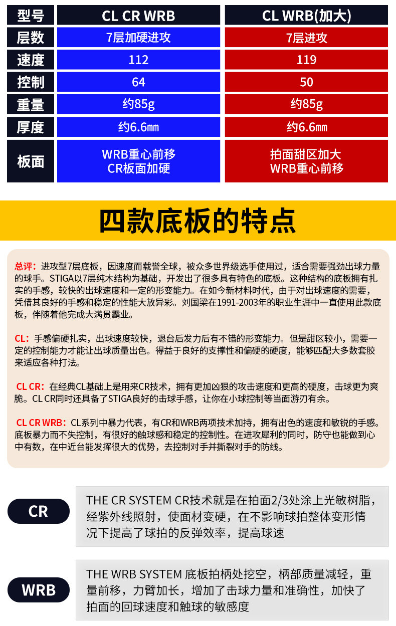 Stika CL CR WRB быстрая атака, чисто деревянное основание Stika, основание ракетки для настольного тенниса, доска для игры в мяч профессионального уровня