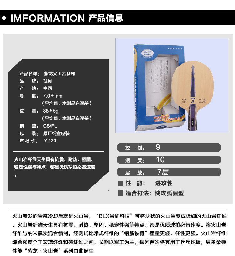 Подлинная галактика yinhe Zilong Series серия рок -серии настольные теннисные вулканические породы 7 z7 vf настольный теннис.